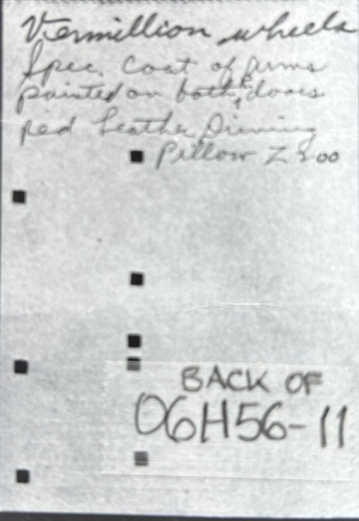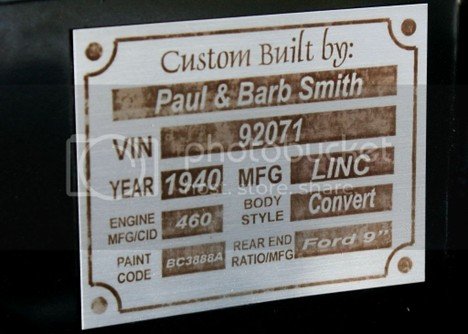 Car identification photo VIN Number Tag (not standard):