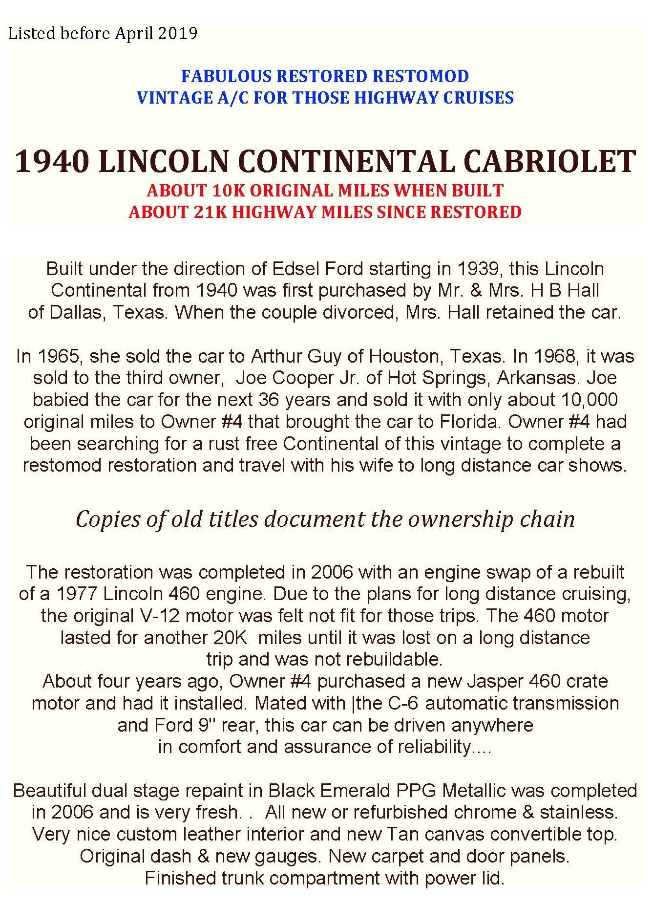 Pictures at the time of the before-April-2019 sale: