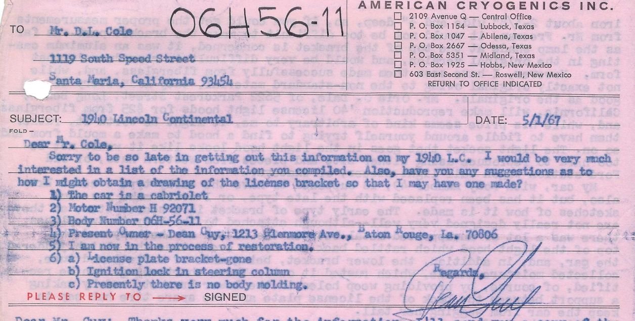 Correspondence to Arthur Guy May 1967: