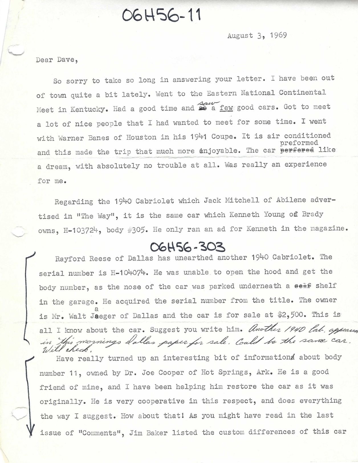 Correspondence from David Freeman dated August 3, 1969: