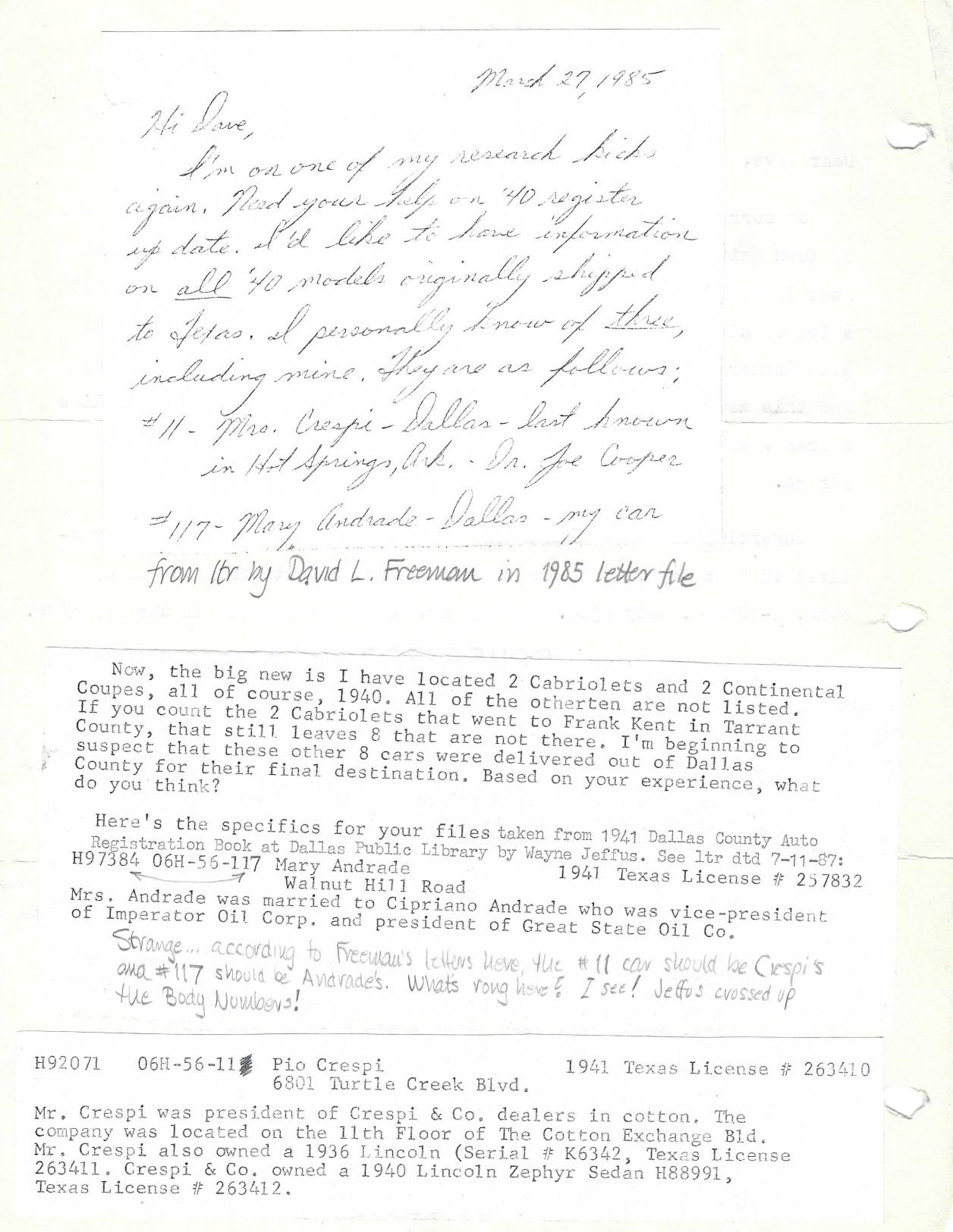 A letter from David Freeman dated March 27, 1985: