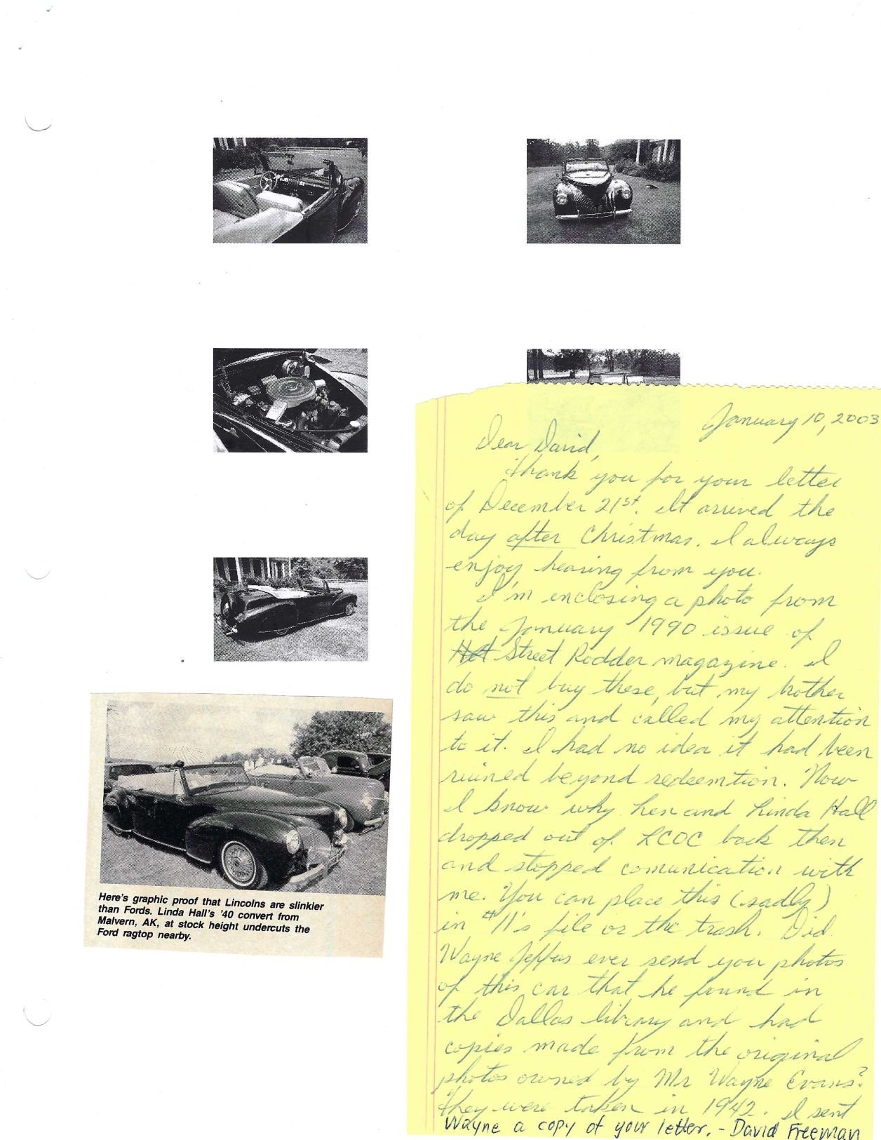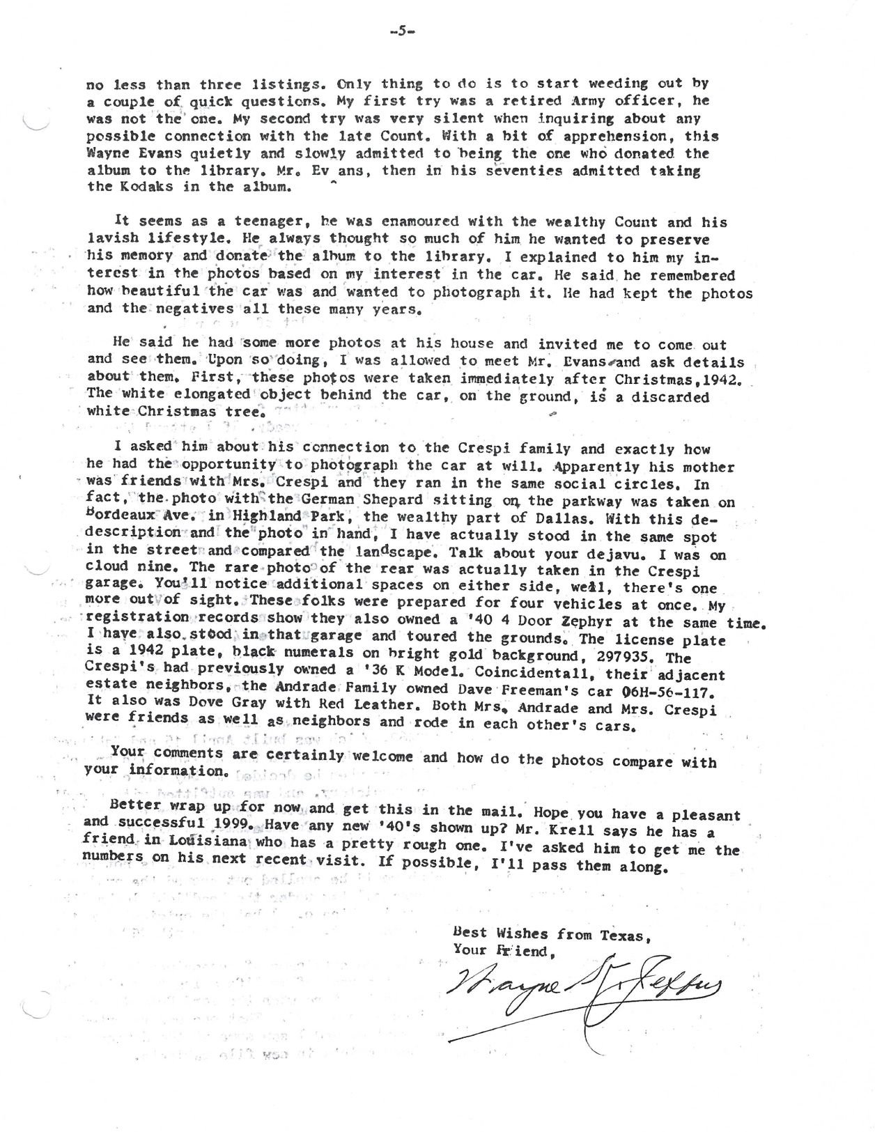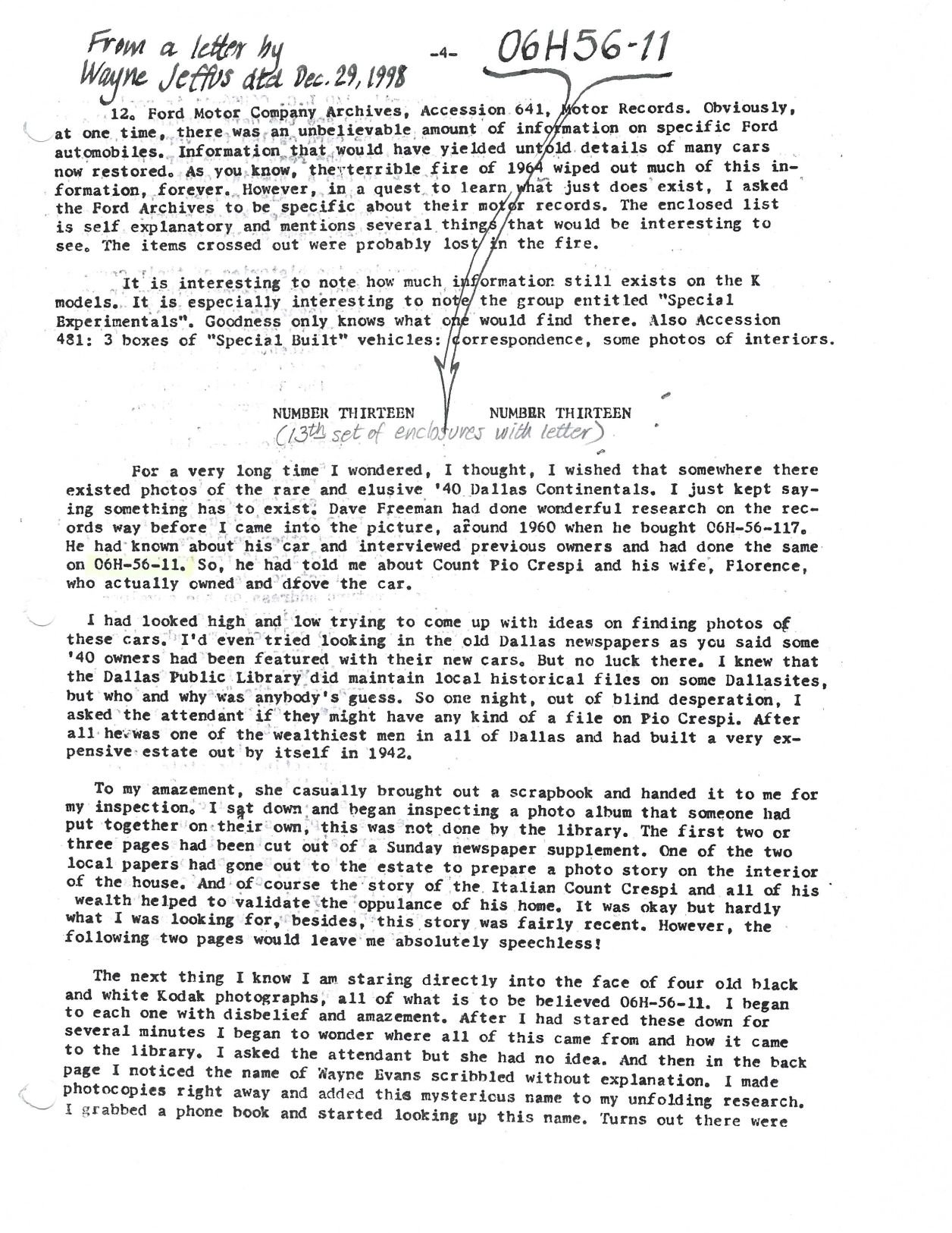 Correspondence and photos from Wayne Jeffus dated December 29, 1998. The photos are from December 1942: