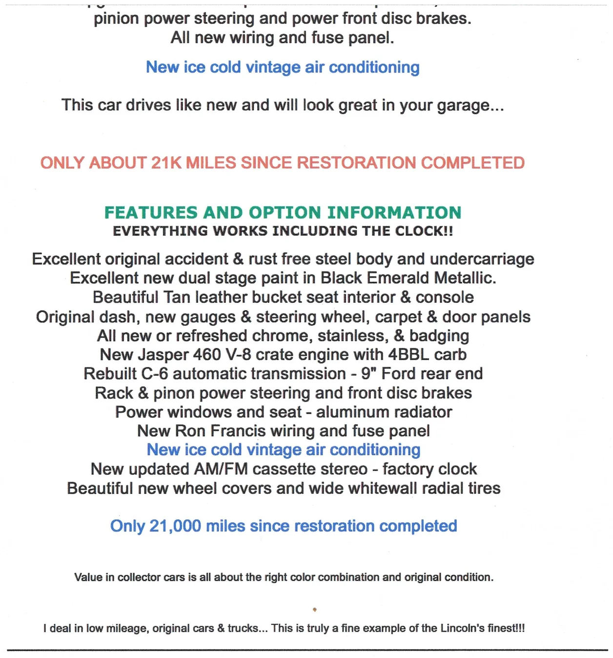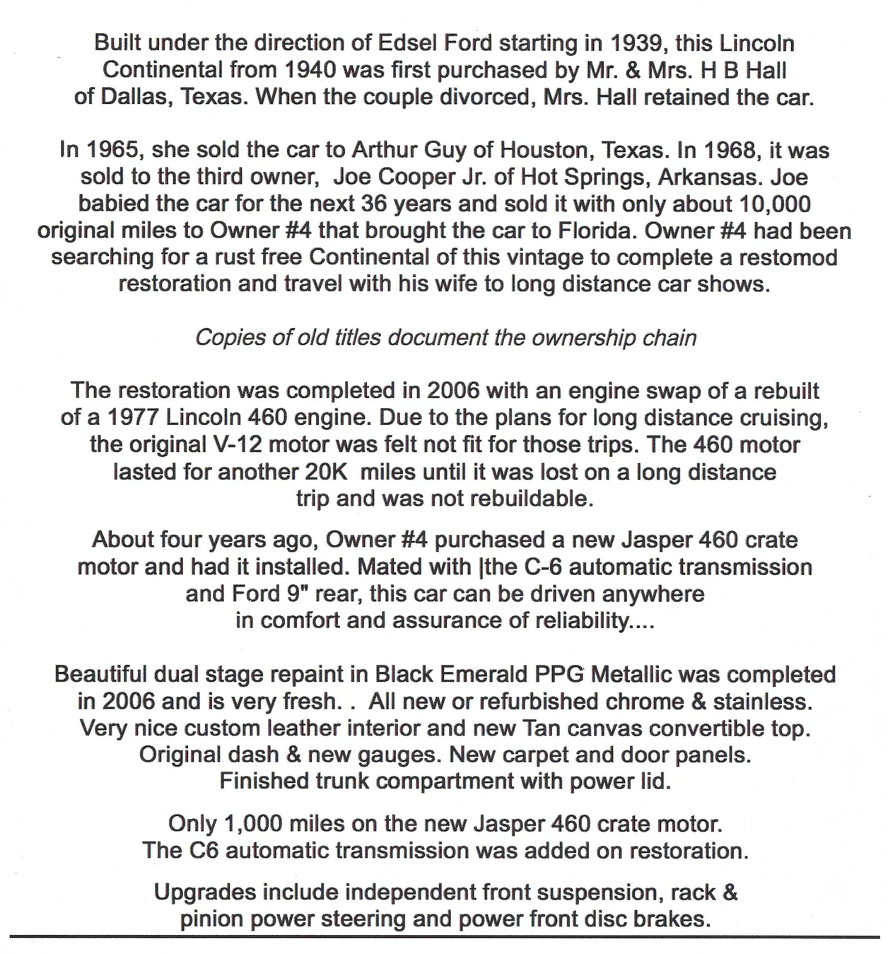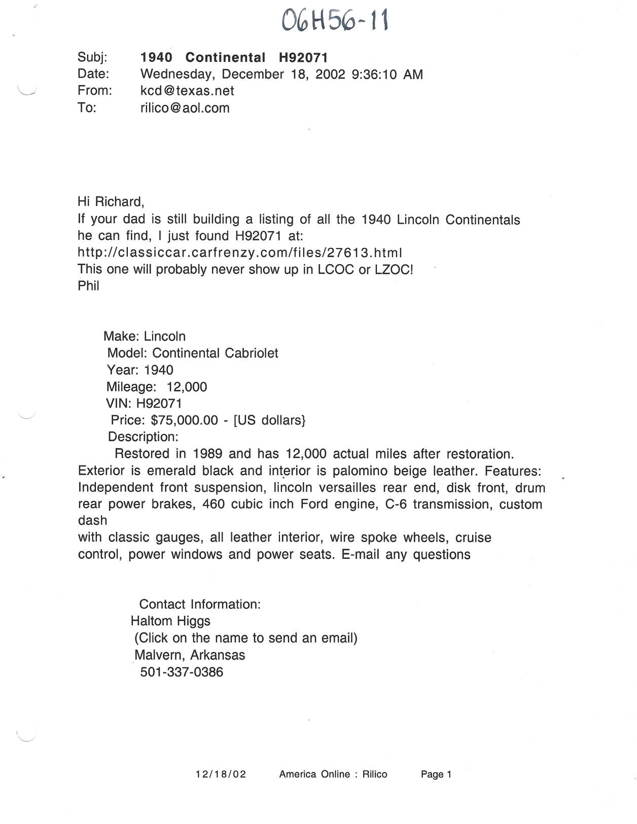 A note about the sale listing from December 2002: