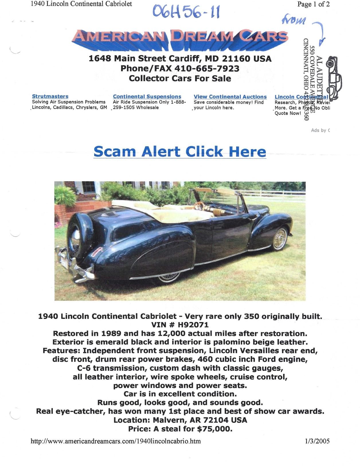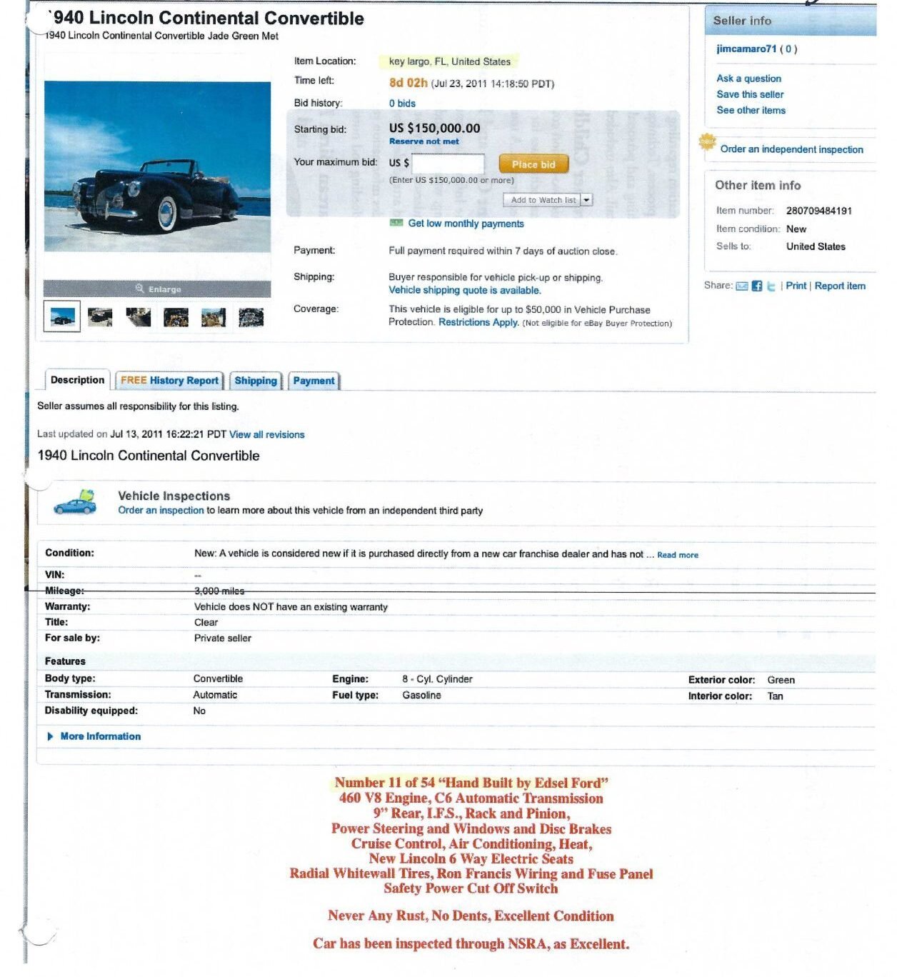 Sale Listing on EBay from July 2011: