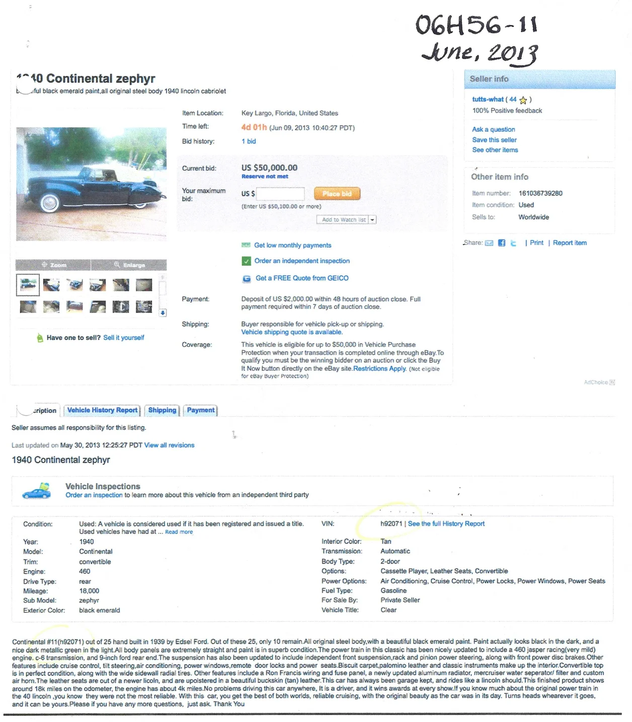 Sale Listing on EBay from June 2013: