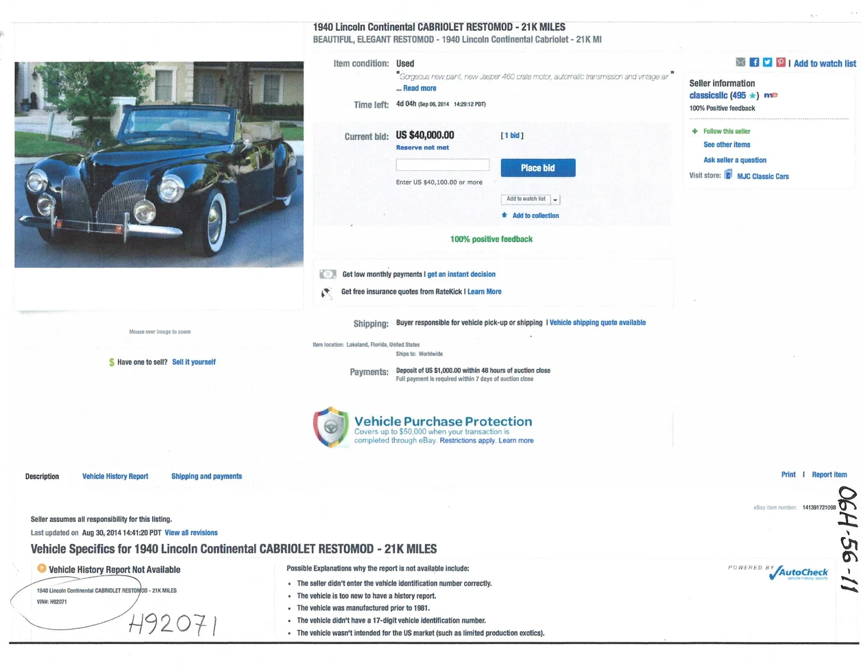 Sale Listing on EBay from Sep 2014: