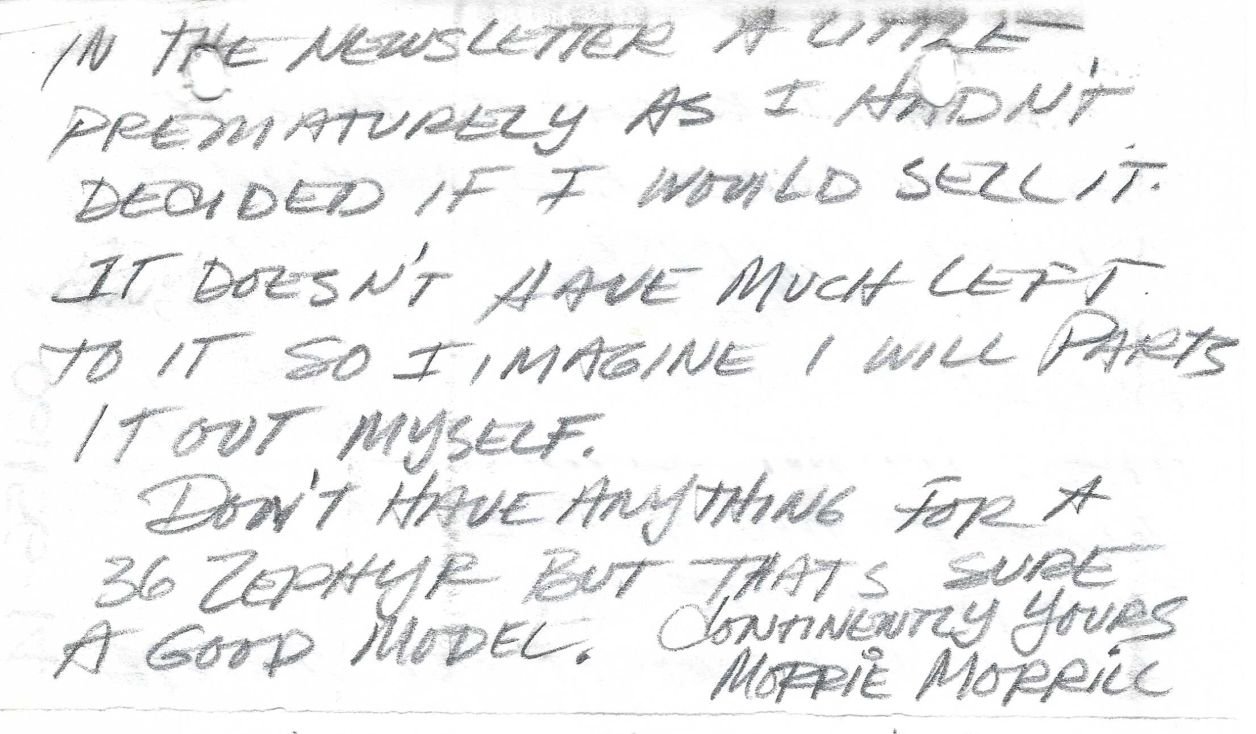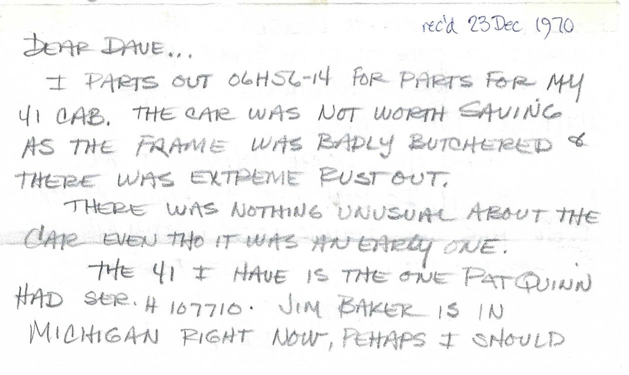 Two letters from Maurice Morrill regarding the parting out of the car in 1970: