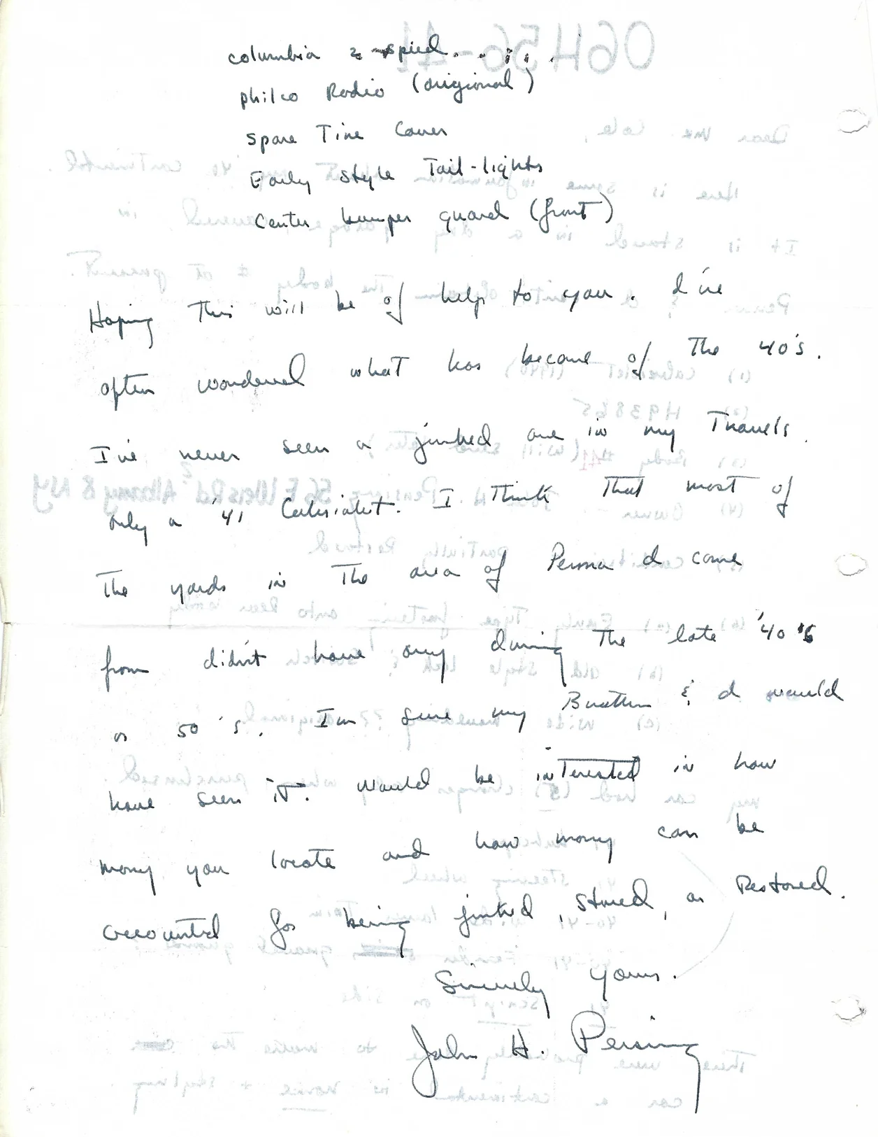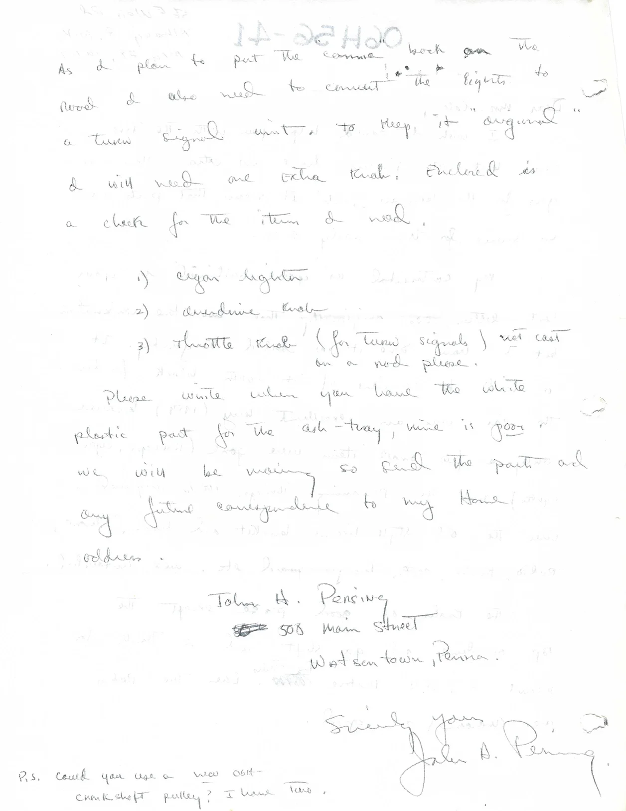 Letter from John Pershing dated circa 1968: