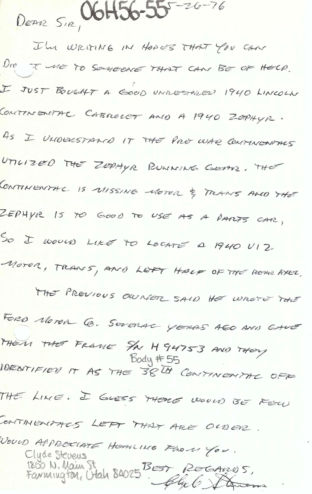 Correspondence from Clyde Stevens dated May 26, 1976: