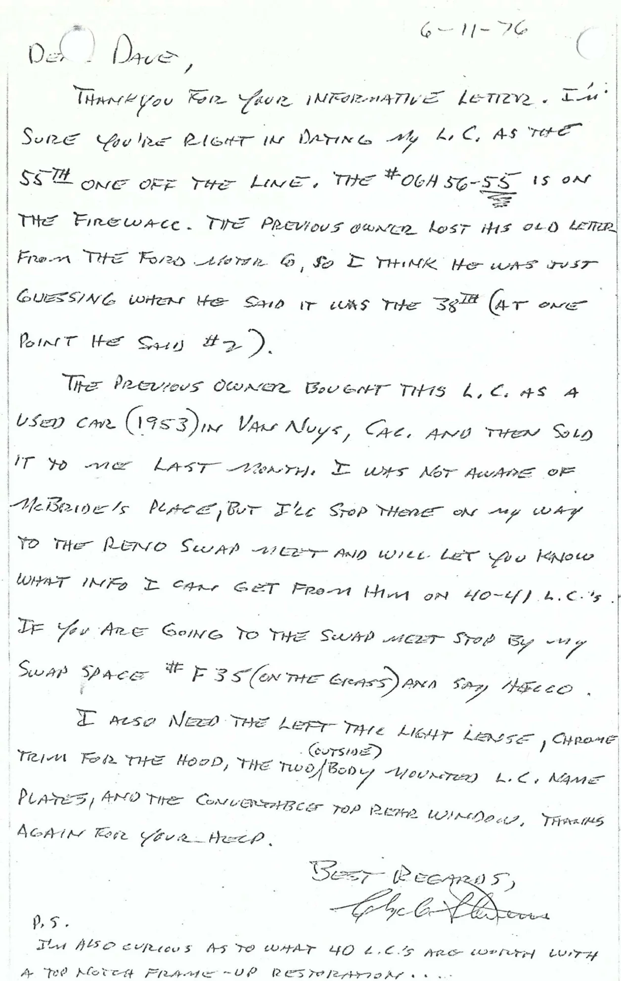 Correspondence from Clyde Stevens dated June 11, 1976: