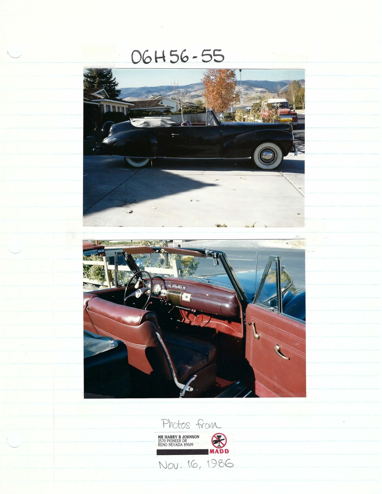 Two photos of the car by Harry Johnson in November 1986: