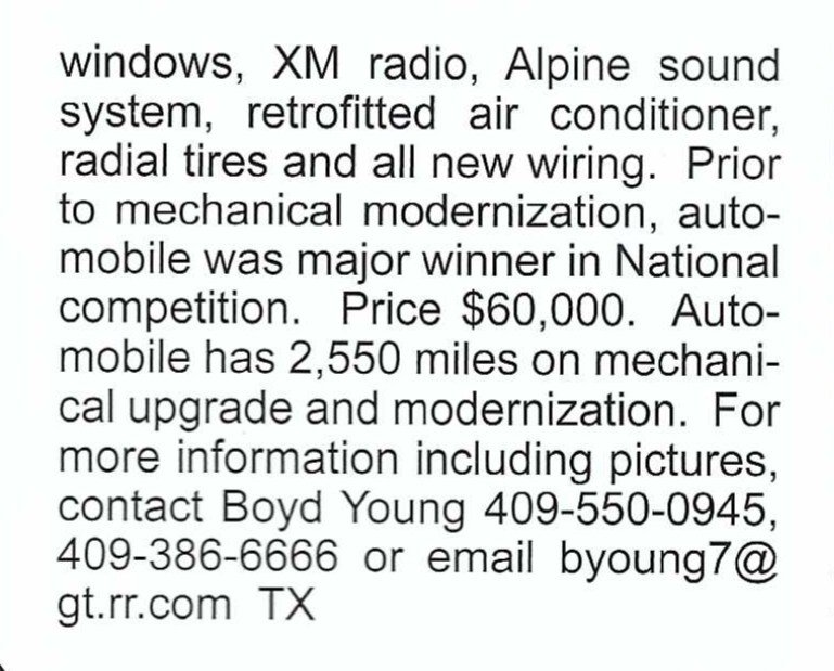 Sale listing from September 2014 of the car after its modification, which occurred circa 2005:
