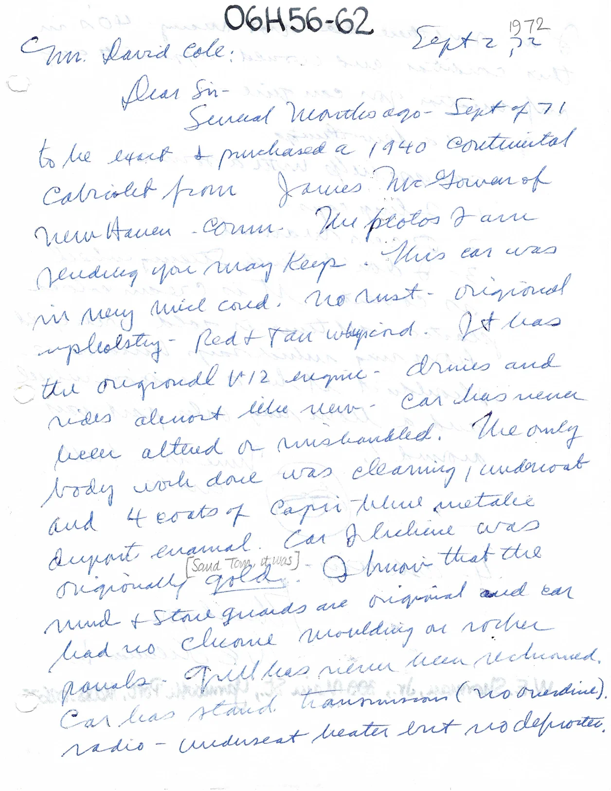 Photos of the car from 1972 after its restoration by W.E. Sherman:
