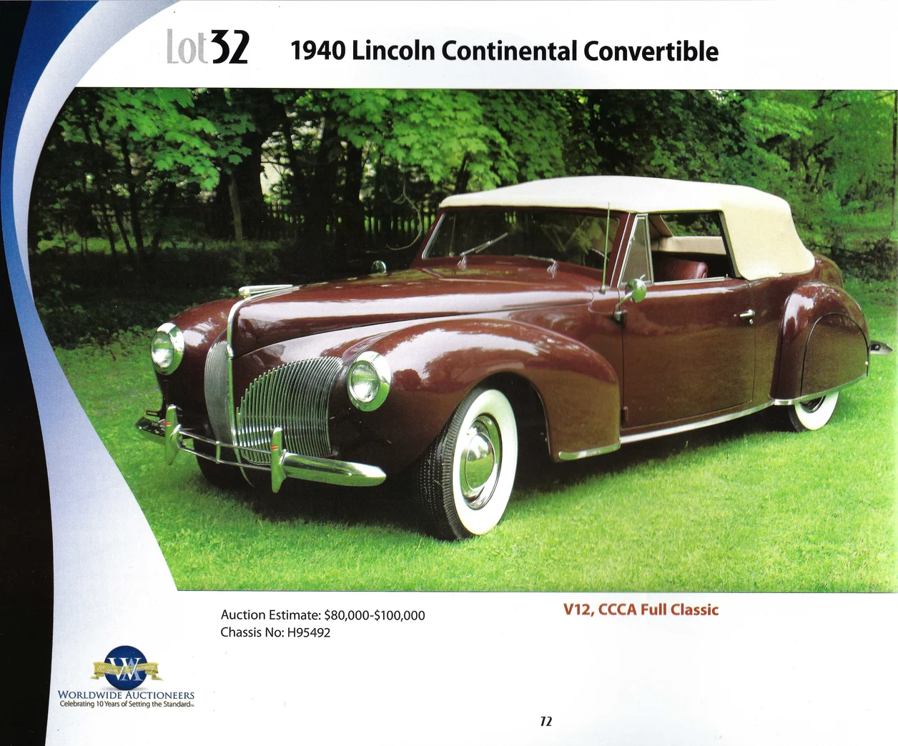 Auction listing from September 2011, Worldwide Auctioneers auction at Auburn, IN: