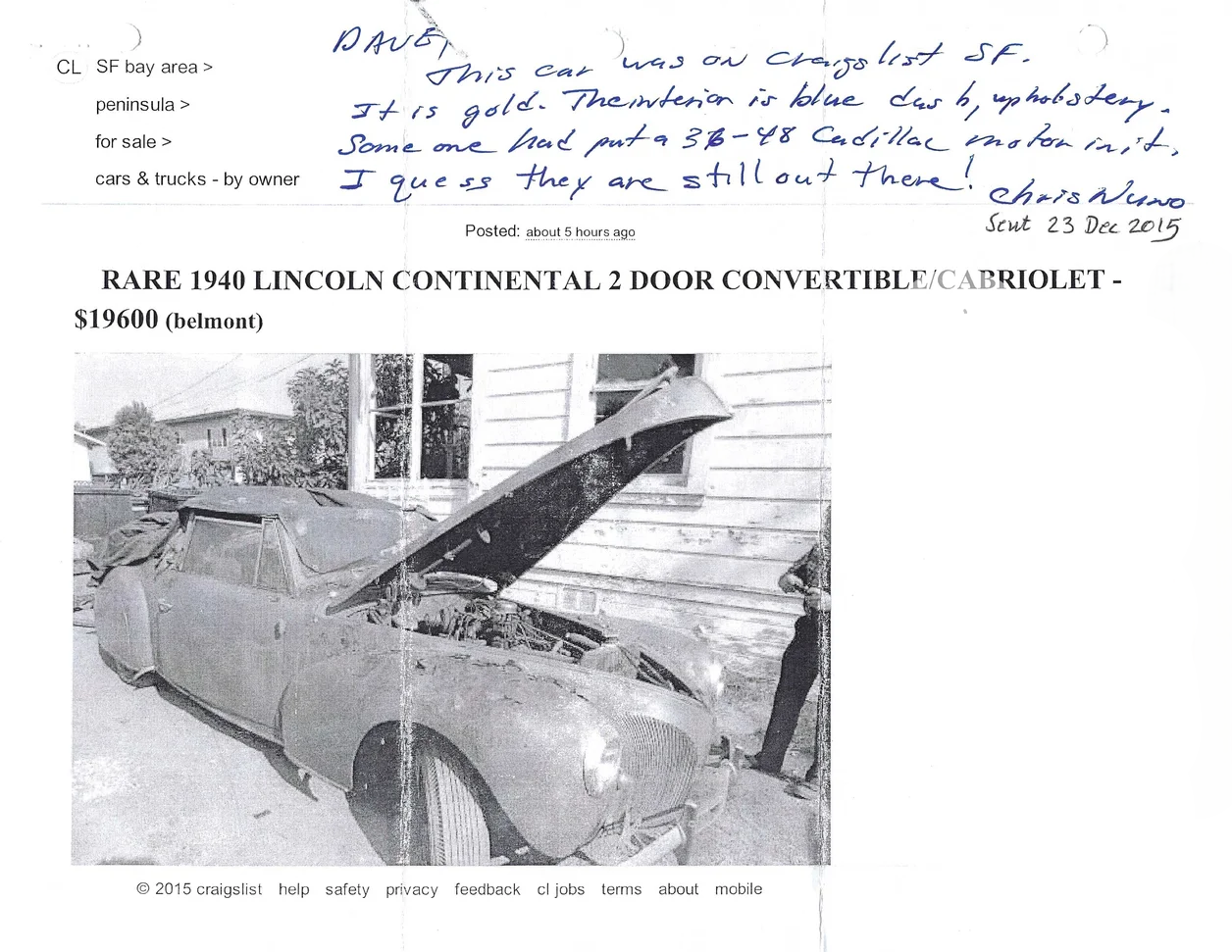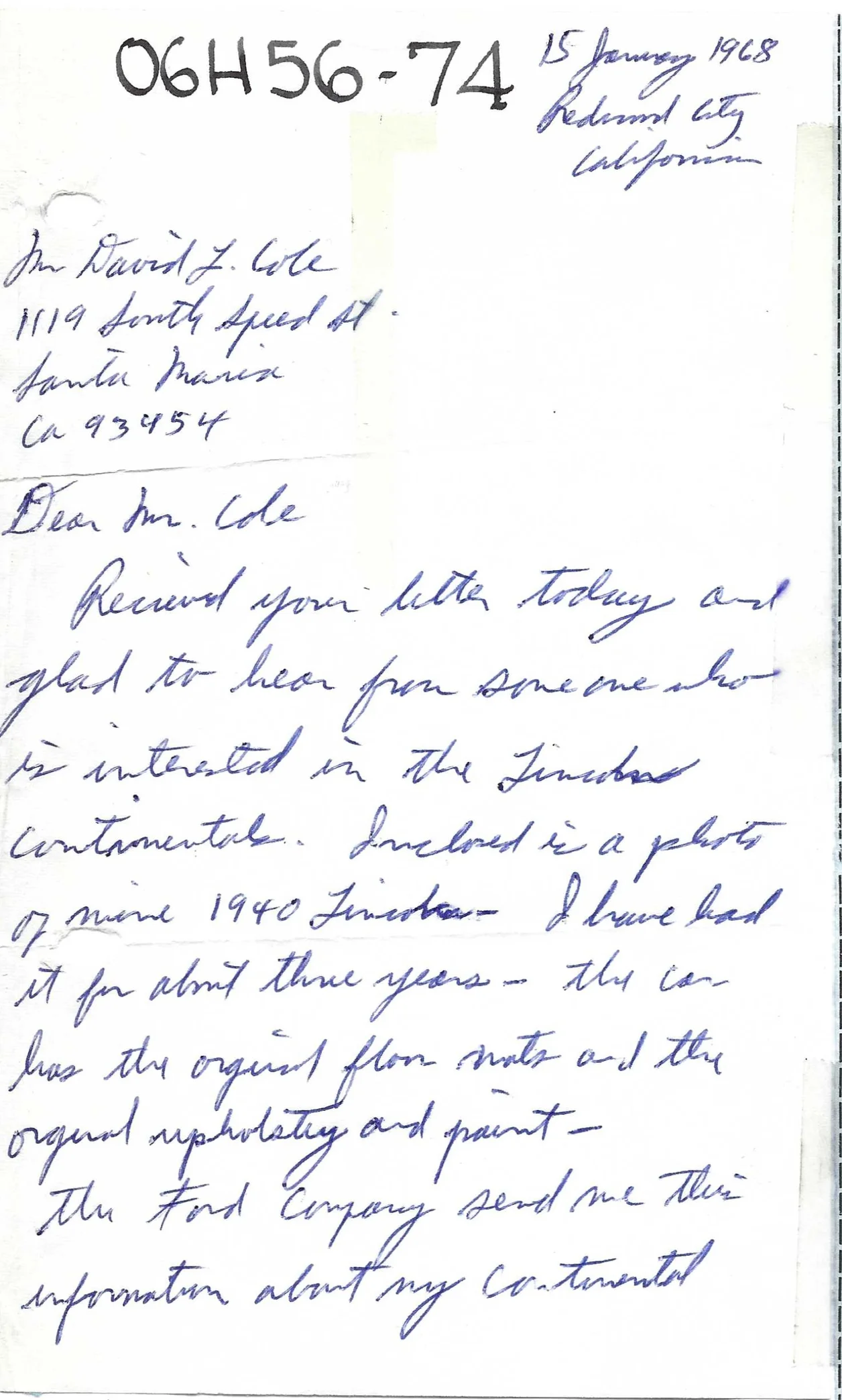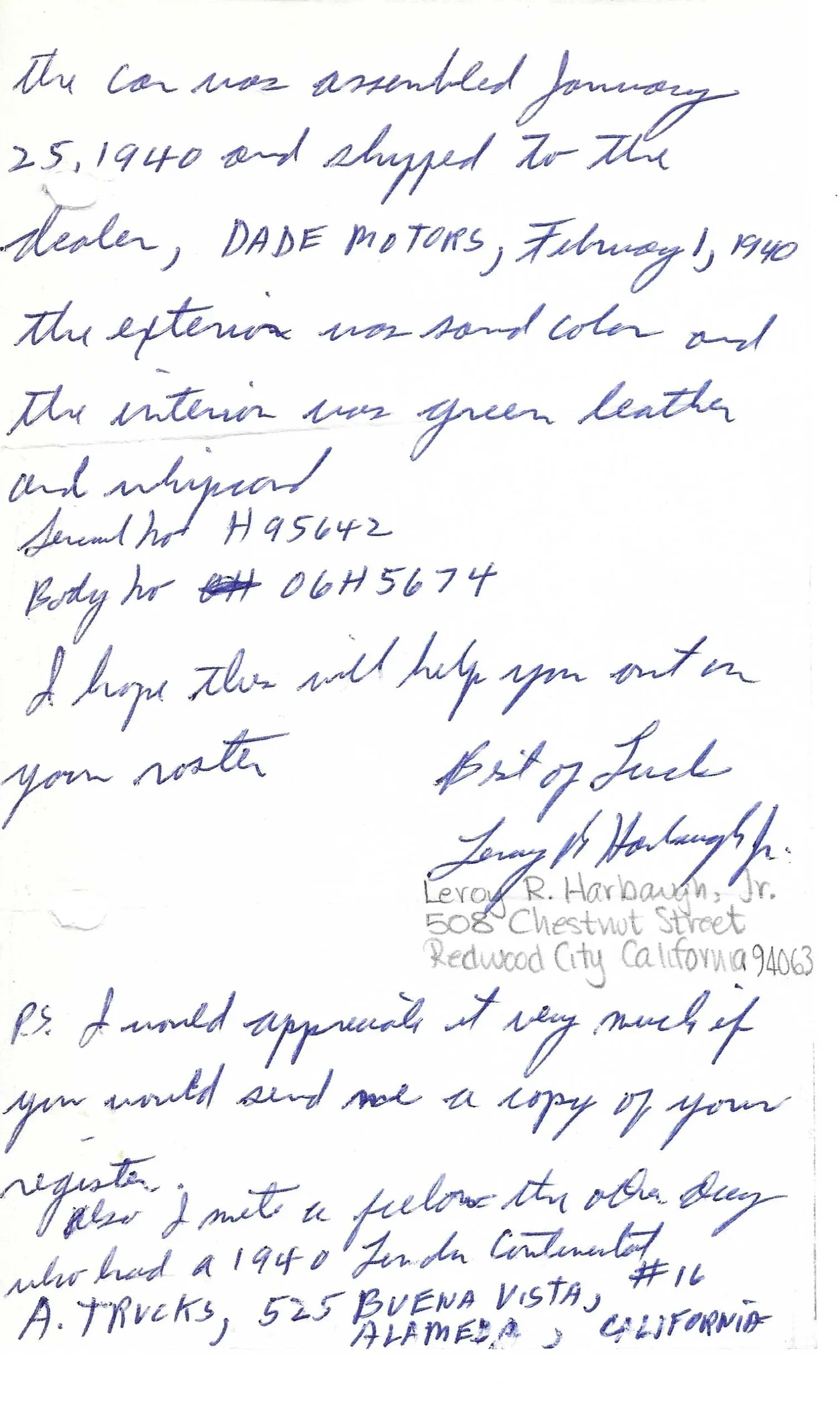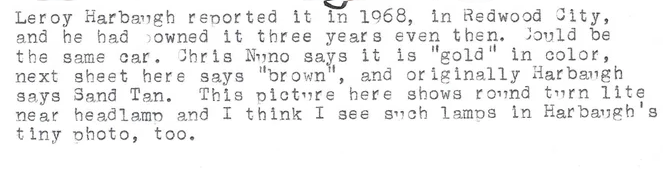 A letter and photo of the car from Leroy Harbaugh dated January 15, 1968: