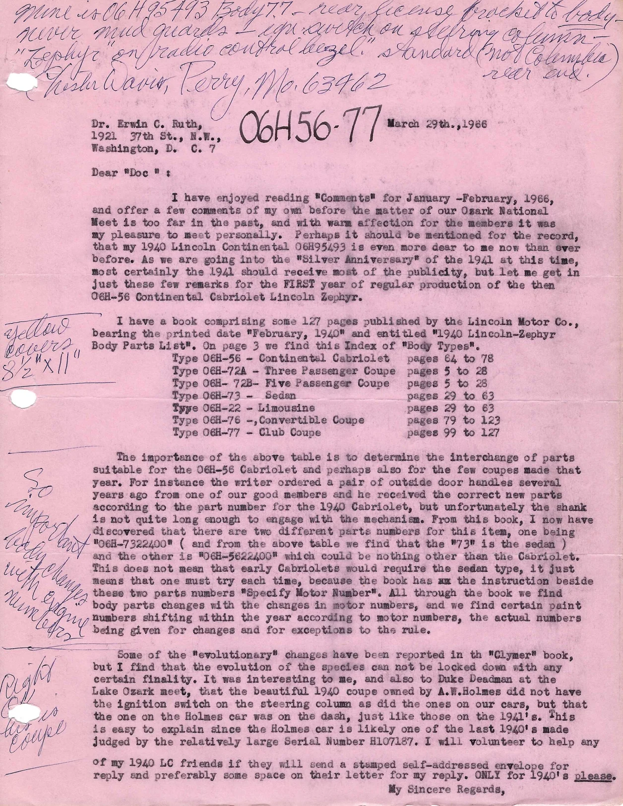 A letter from Chester Davis to Erwin Ruth dated March 29, 1966: