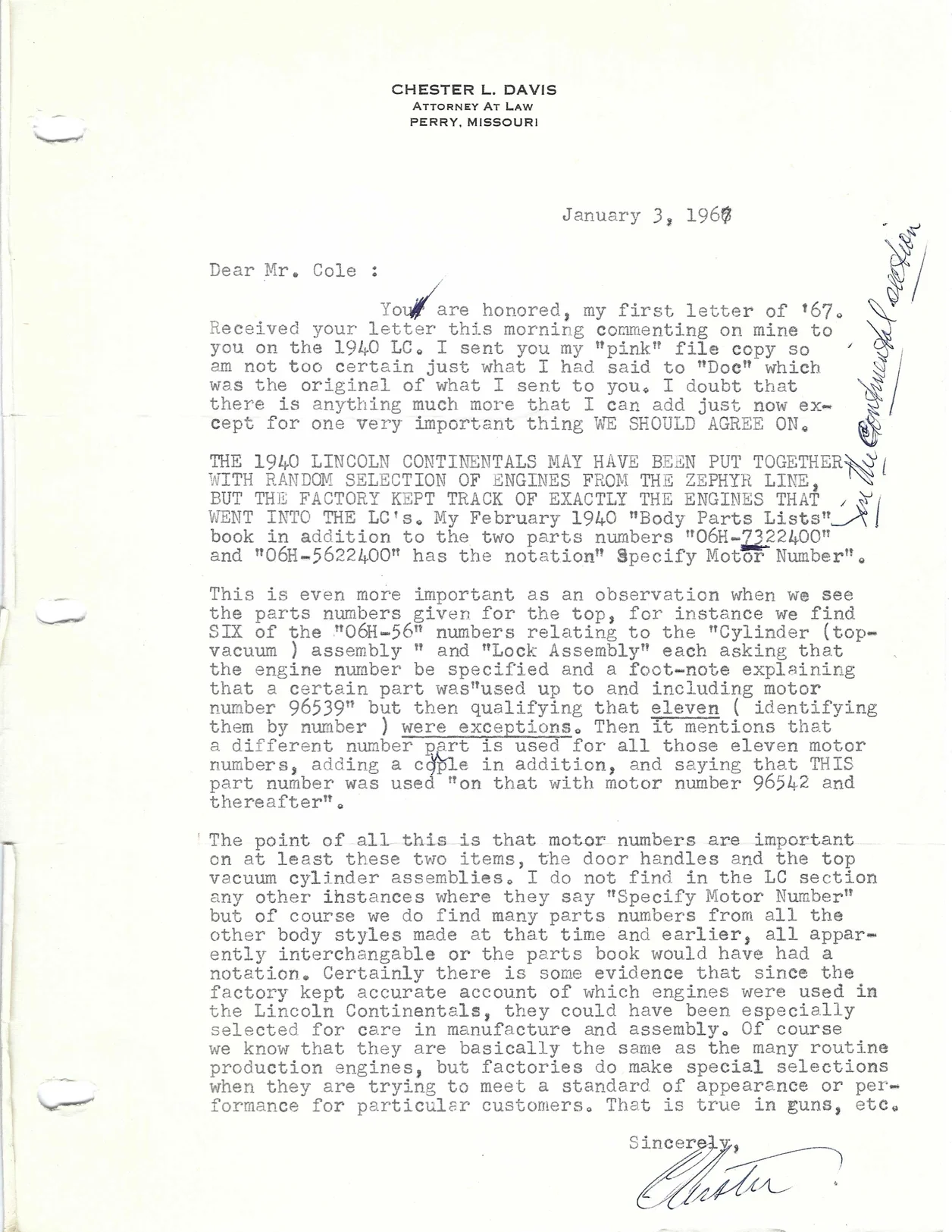 A letter from Chester Davis to dated January 3, 1967:
