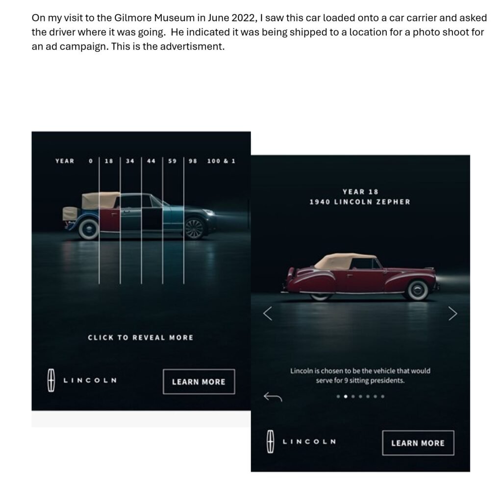 Photos of the car at the Lincoln Museum in 2022:
