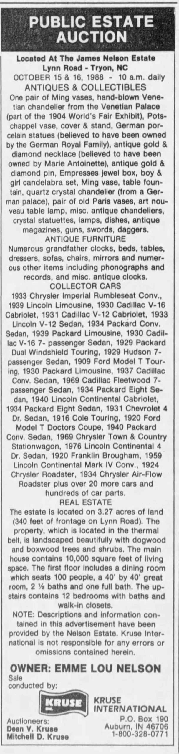 A Notice Of Auction of the Estate of James Nelson from October 2, 1988: