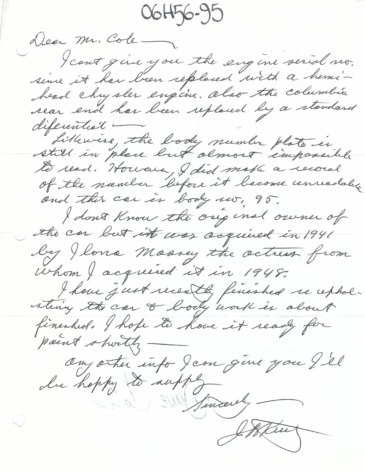 Note: the colors match and the date matches the her purchase date (according to Mr. Kurtz). It would be more convincing if this add was in California not Florida. This is one of only 6 sale listing that were dated 1941 that we have identified.