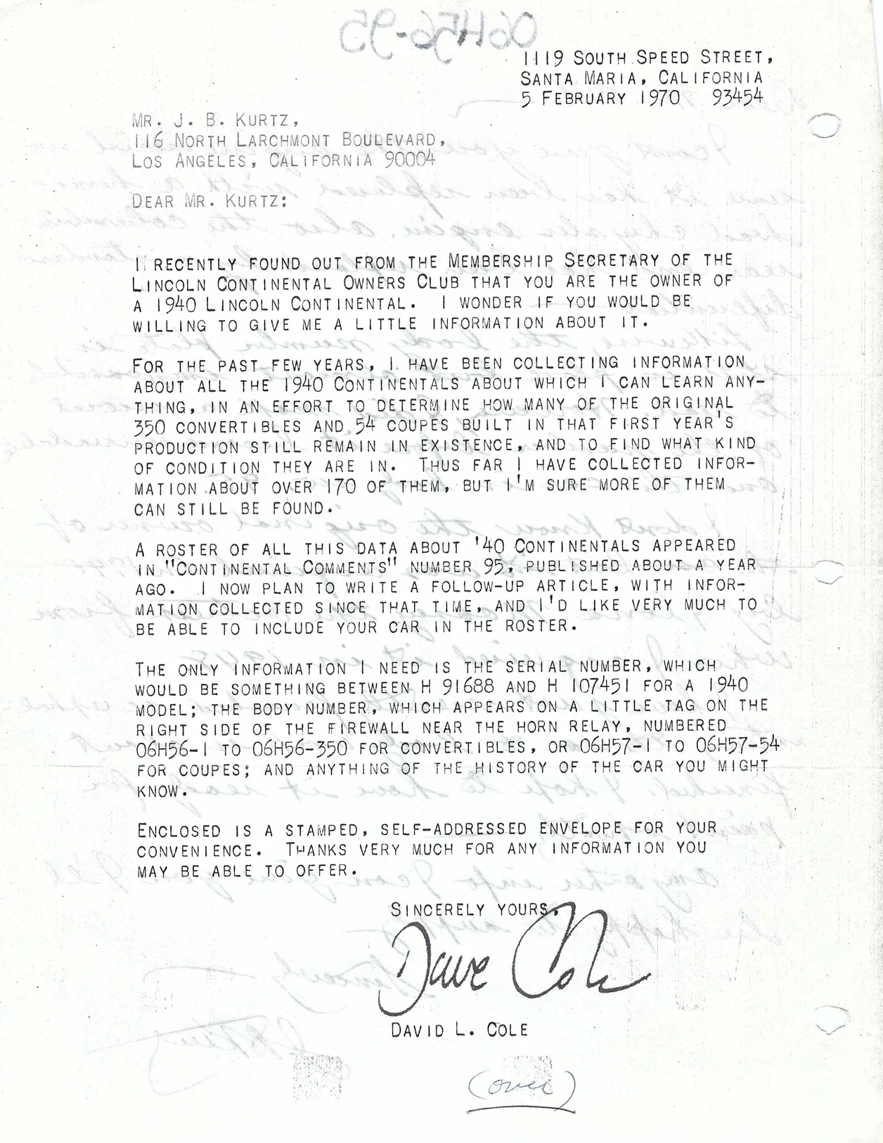A letter to J.B. Kurtz dated February 5, 1970: