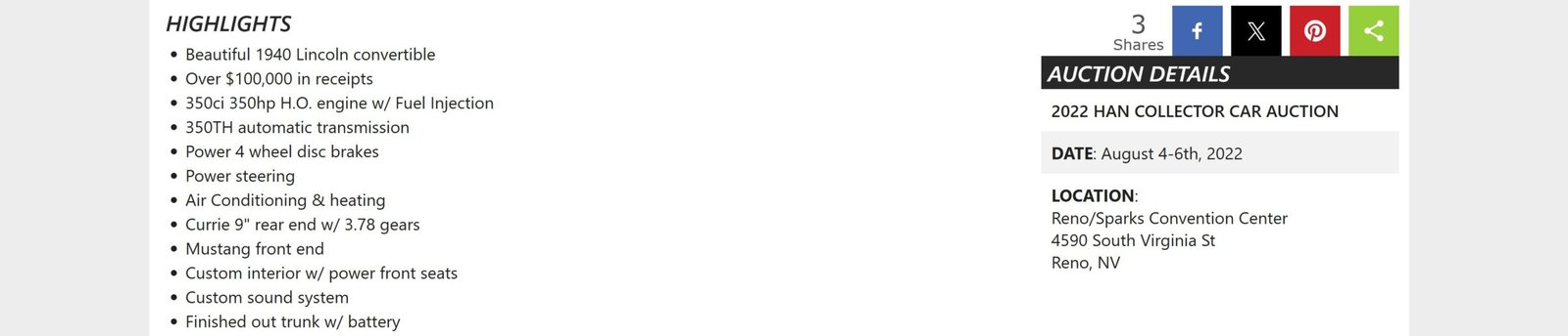 Photos accompanying the sale listing from August 2022 HAN auction at Reno NV: