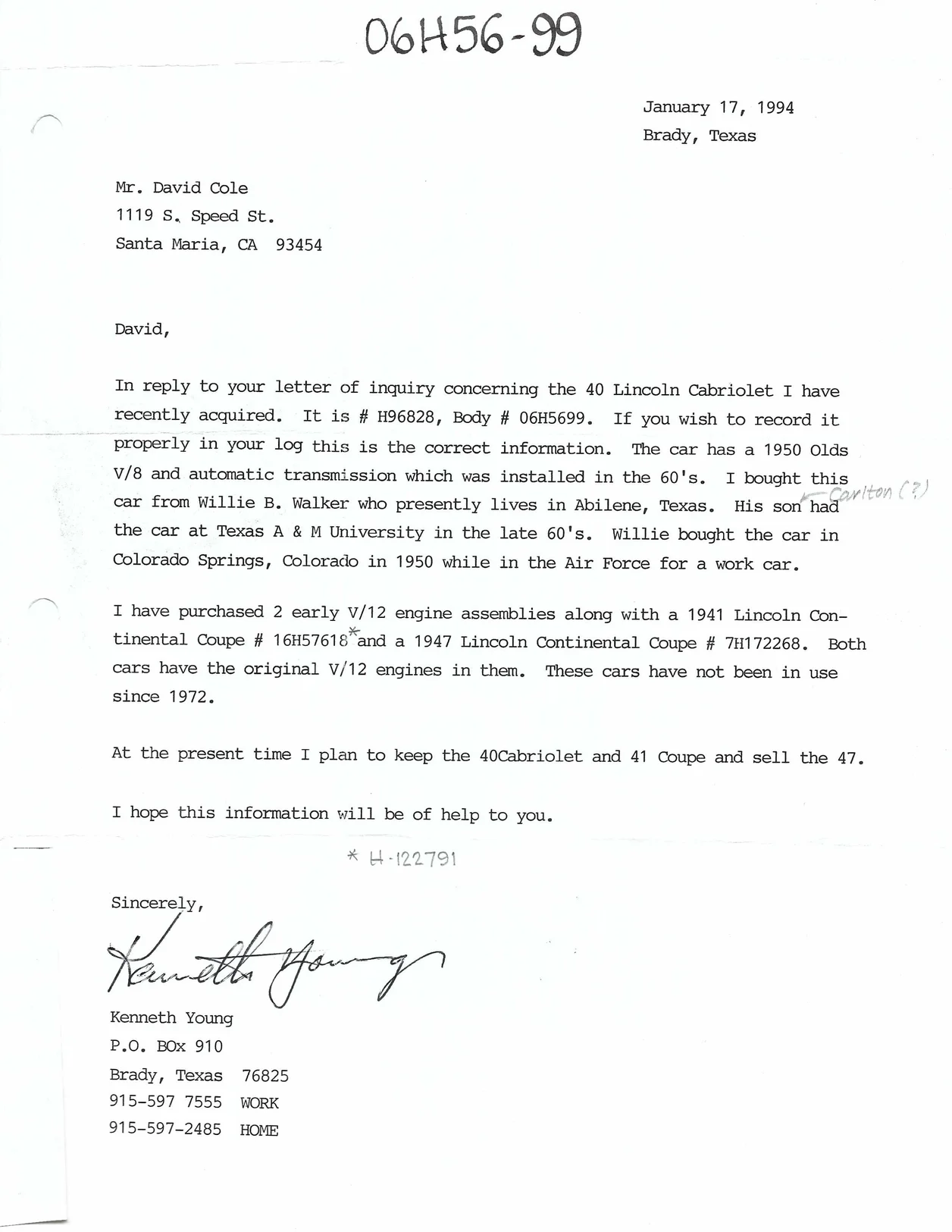 A letter from Kenneth Young dated January 17, 1994: