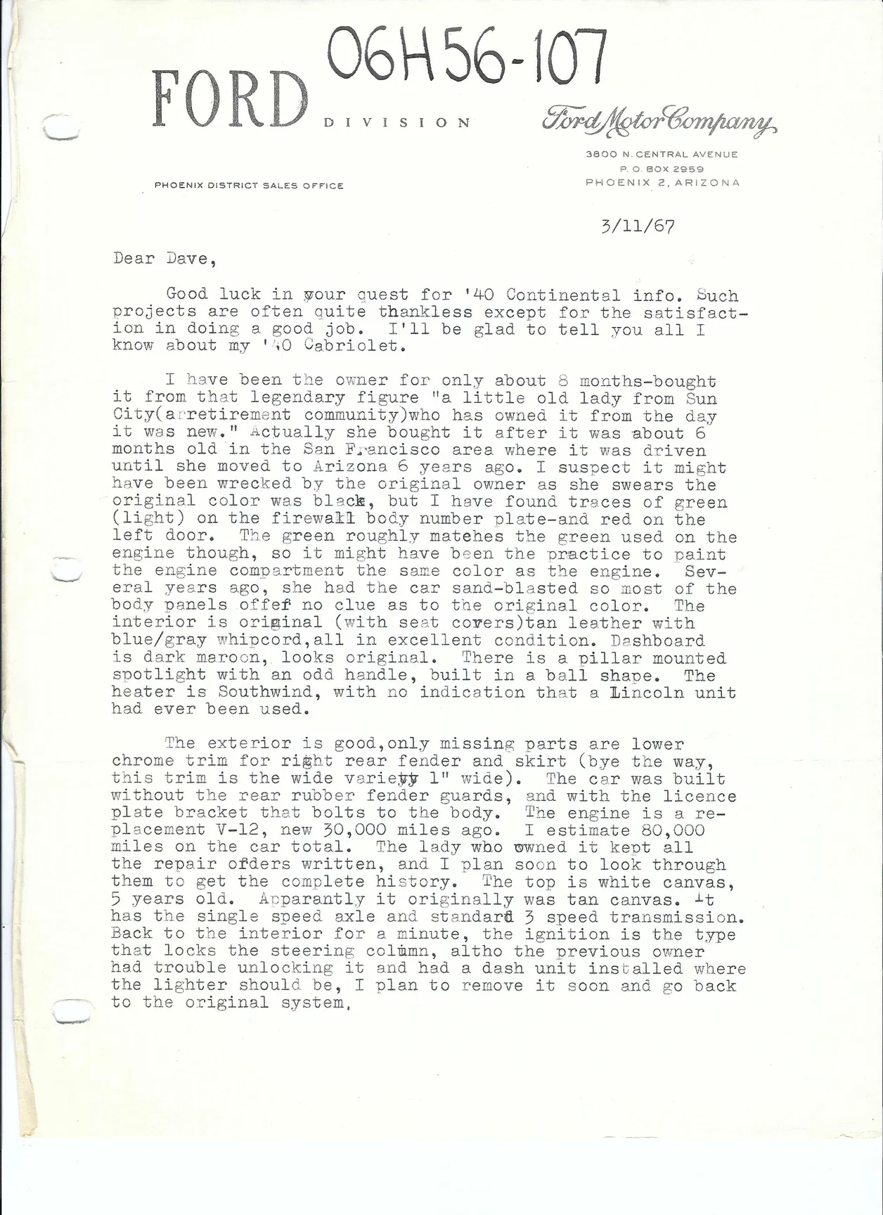 A letter to from Jay McCook dated March 11, 1967: