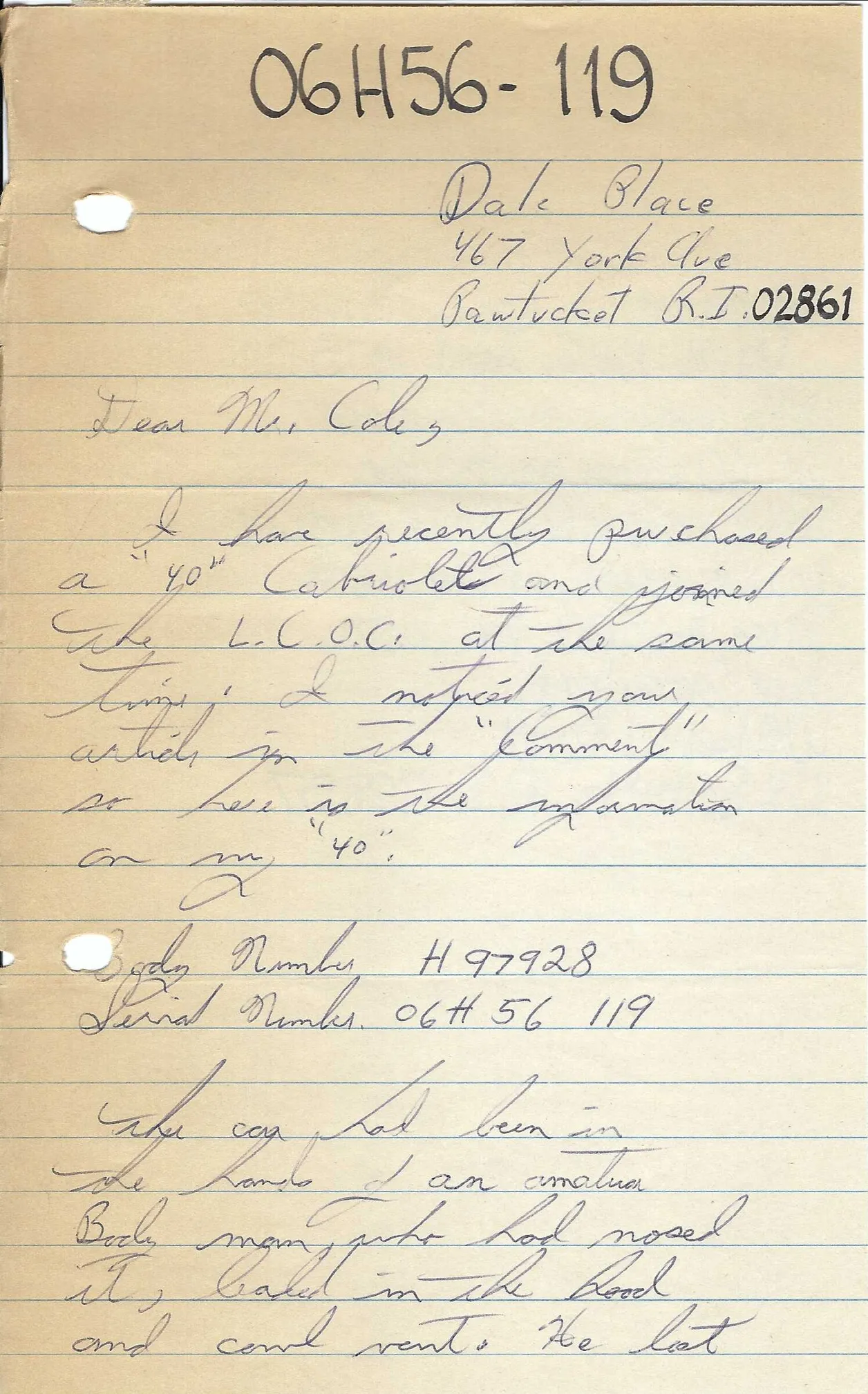 A letter from owner Dale Place dated December 1967: