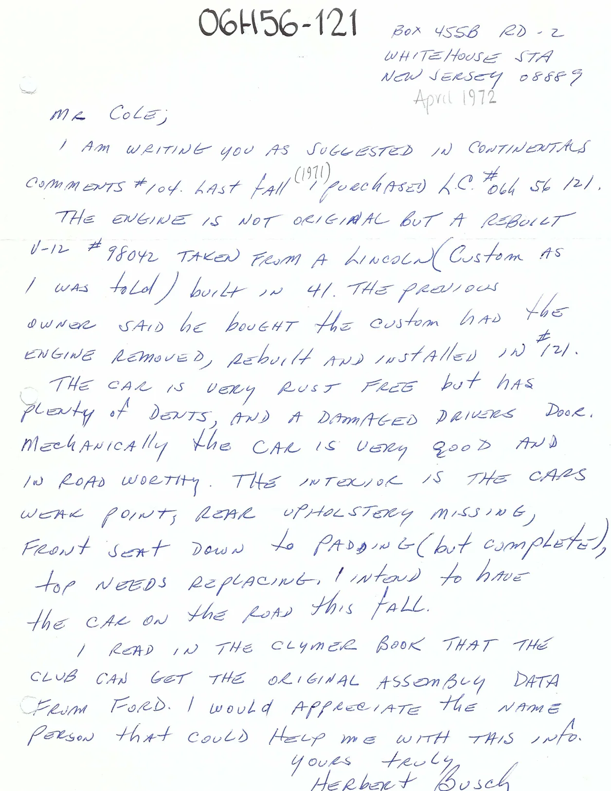 A letter from Herbert Busch dated April 1972: