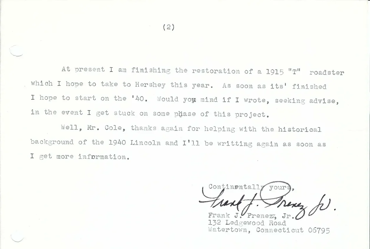 A letter from Frank Prenez dated April 15, 1975: