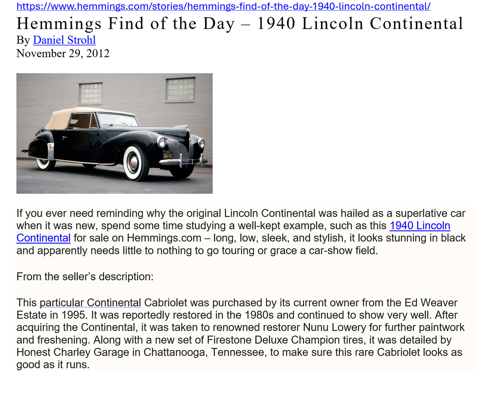 Sale listing recap Hemmings November 2012 (most likely related to the October auction listed below):