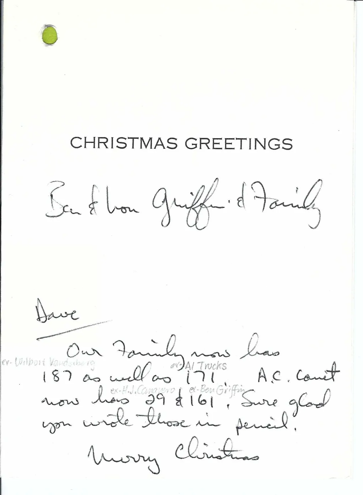 A note from Ben Griffin, undated, announcing his sale of the car to A.C. Canet:
