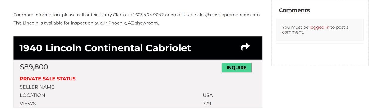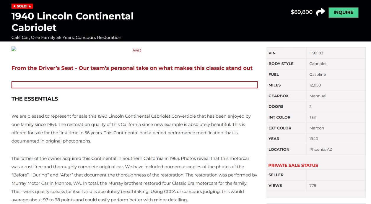 Photos accompanying the sale listing in 2019, by Classic Promenade:
