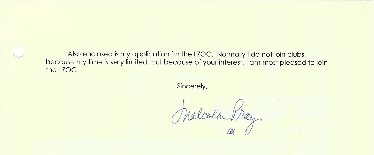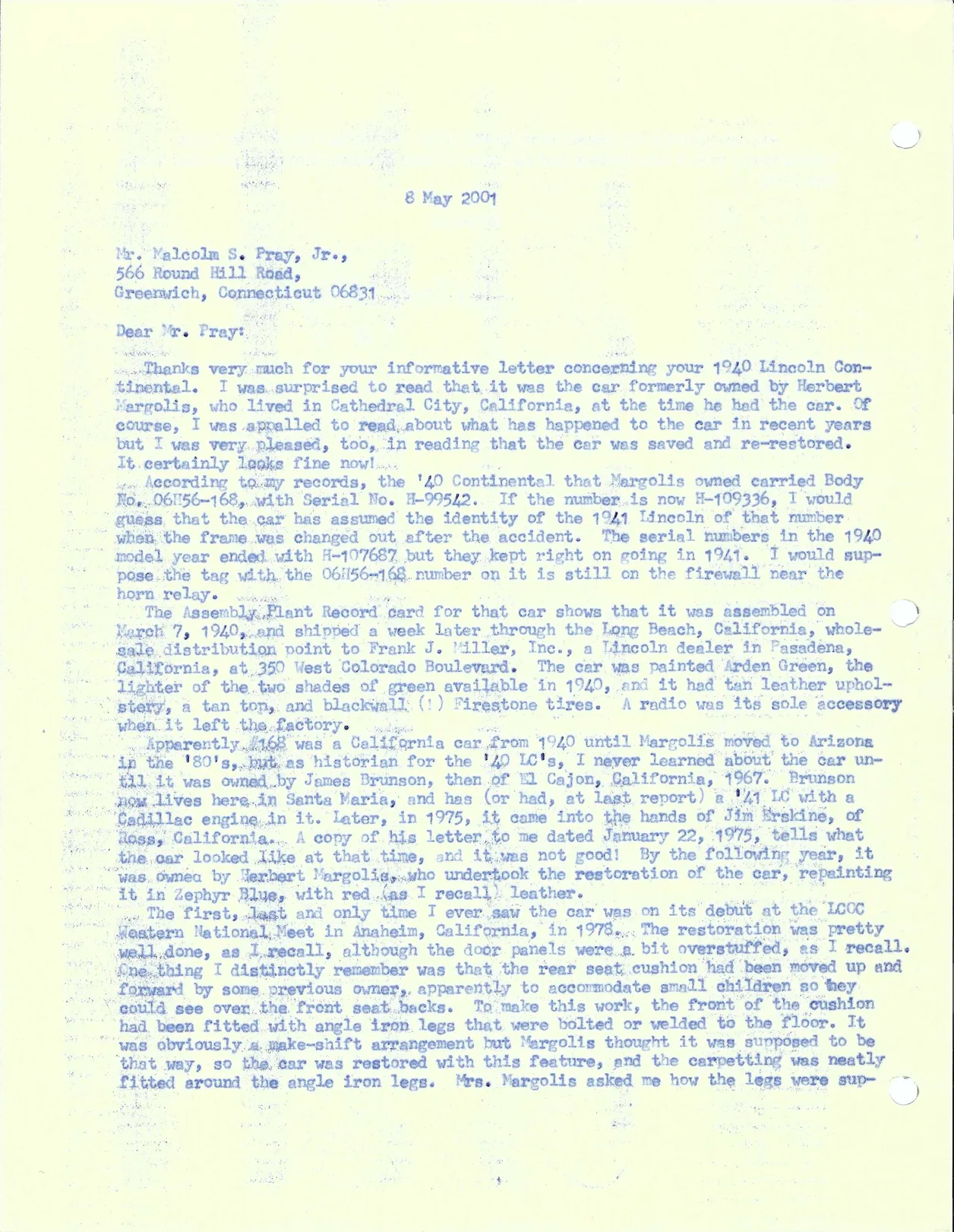 A letter to Malcolm Pray dated May 8, 2001: