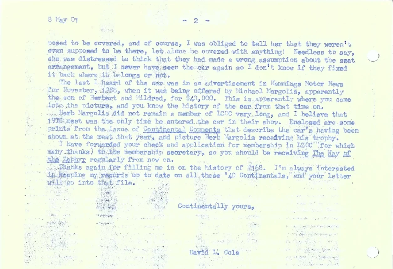Photos of the car when Mr. Pray purchased it in 1988: