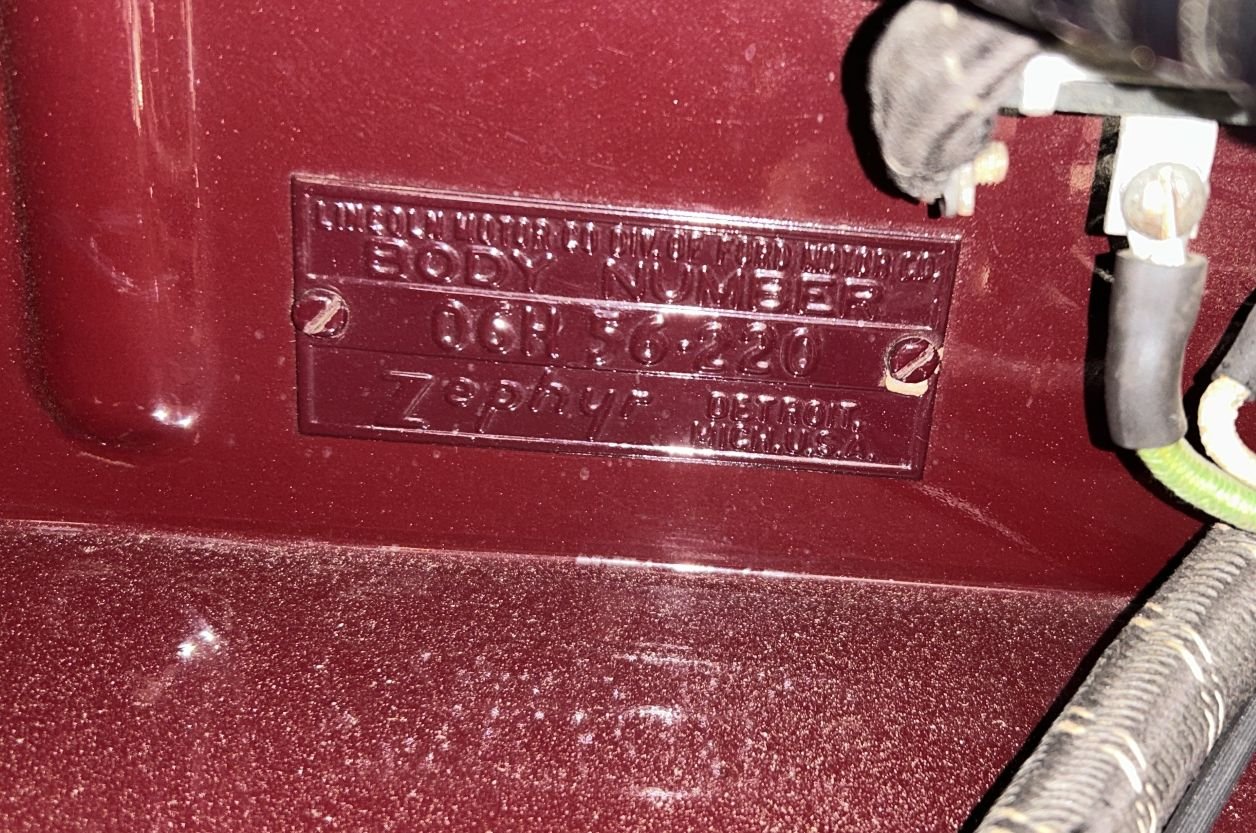 Car identification photos – Body Number Tag and Motor Number: