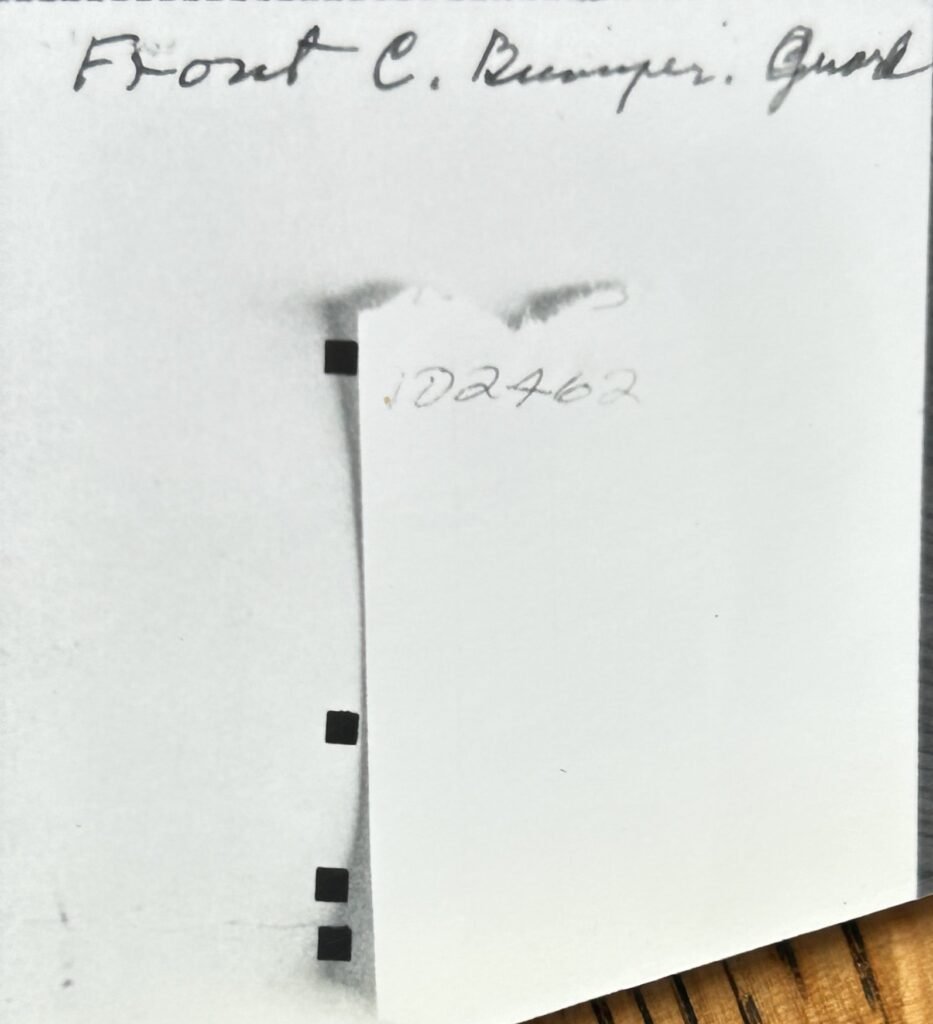 The back of the Assembly Plant Record showing the center-front bumper guard accessory: