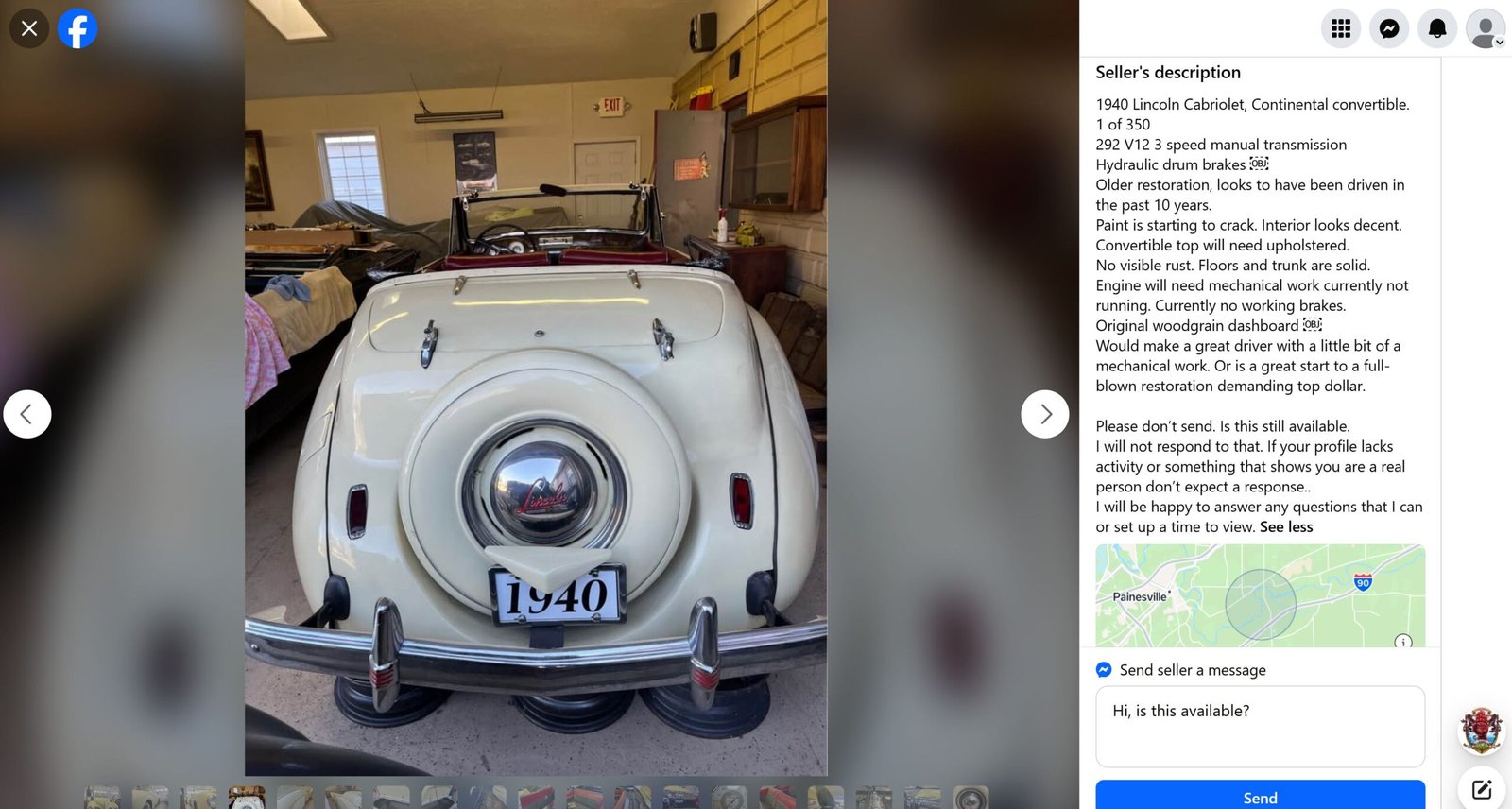 Photos accompanying the sale listing on Facebook: