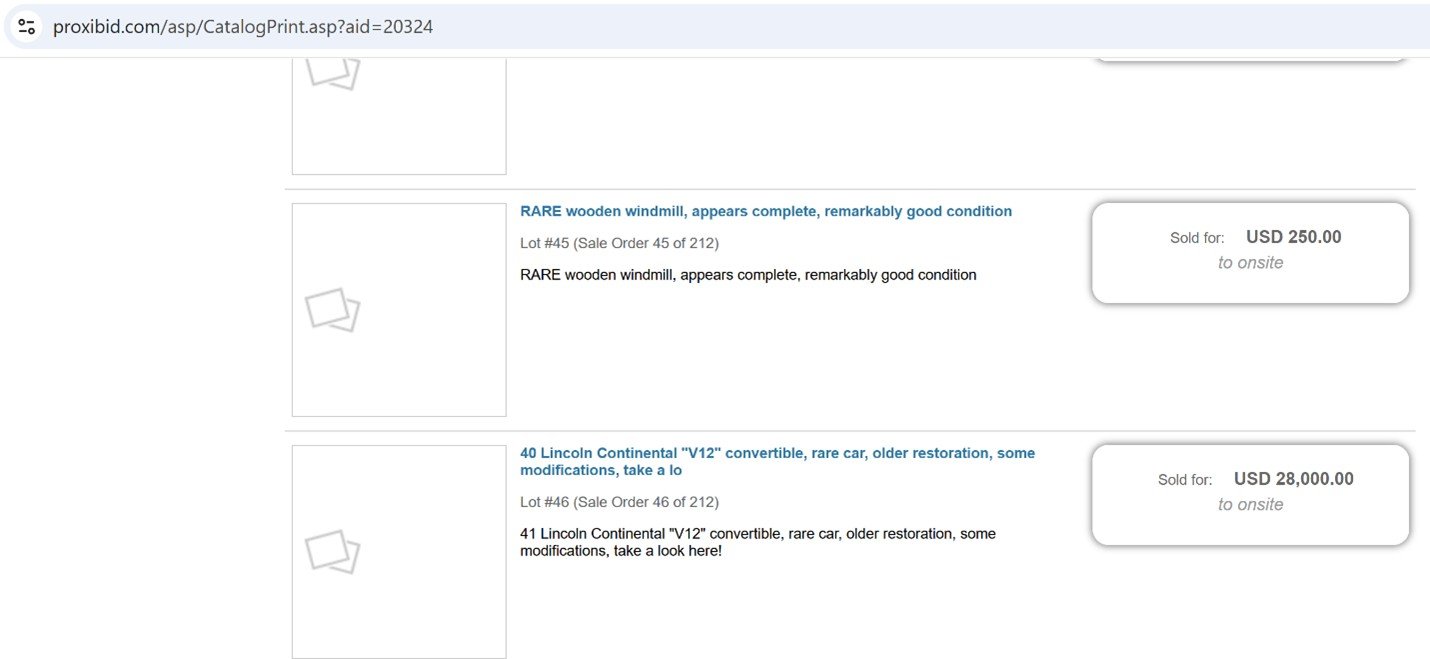 Auction listing May 2009 By Sullivan Auctioneers: