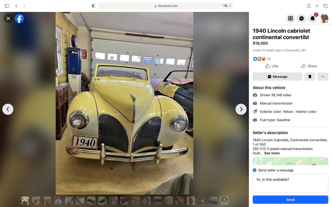 Sale listing on Facebook: