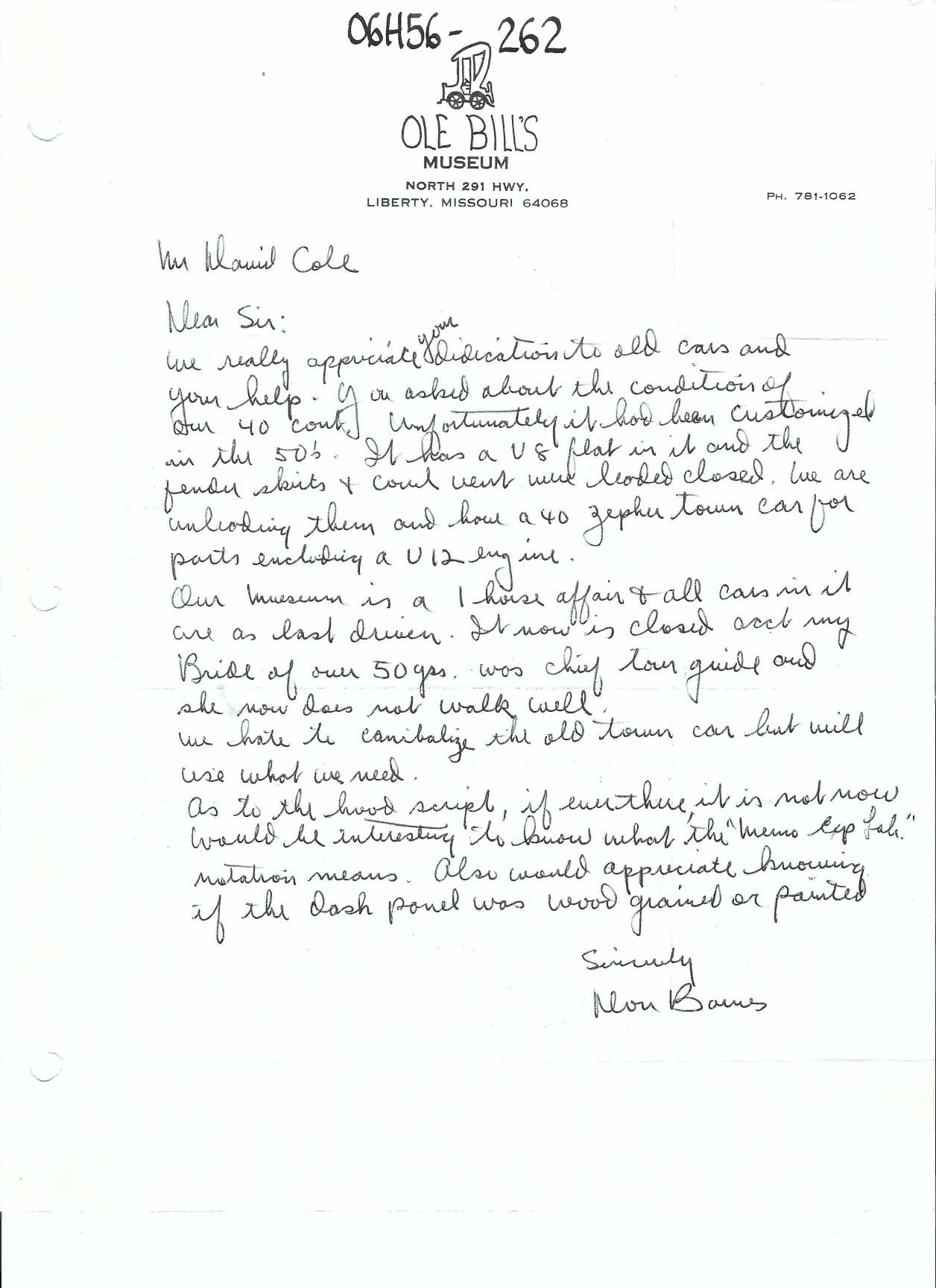 Two letters from Don Barnes when he joined the Lincoln Continental Owners Club in the spring of 1987: