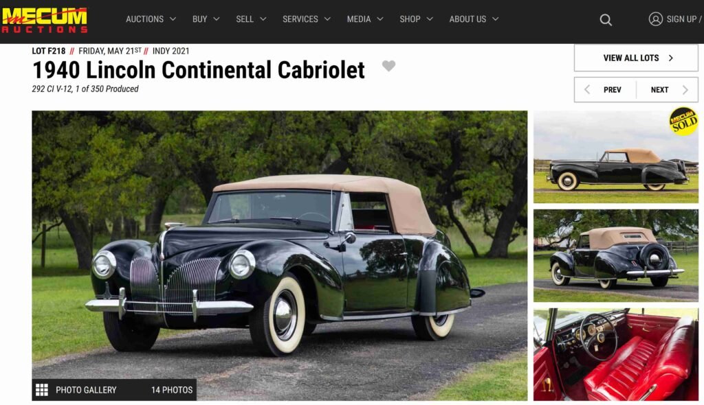 Photos accompanying the sale listing in May 2021 by Mecum Auctions at Indy: