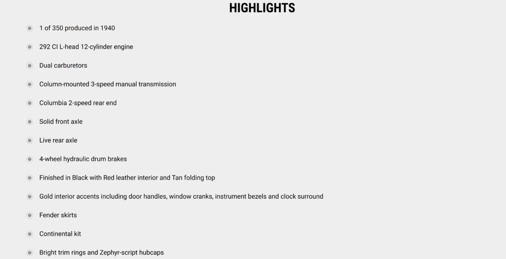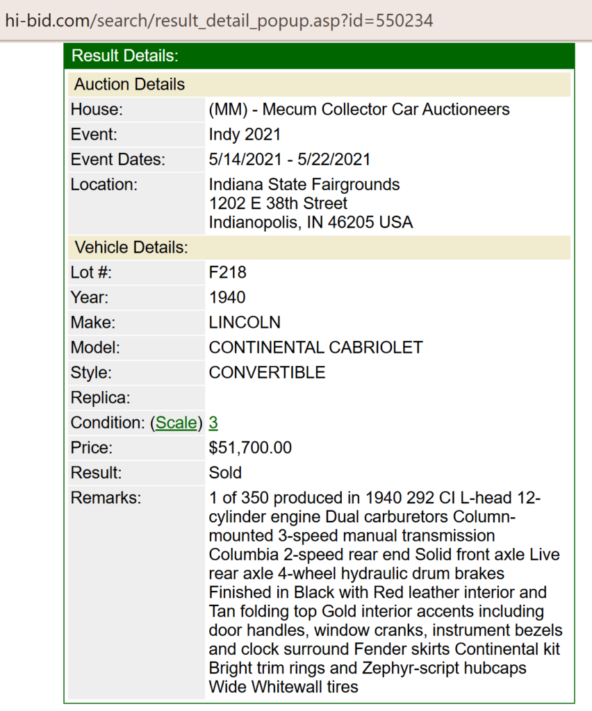 Sale listing in May 2021 by Mecum Auctions at Indy: