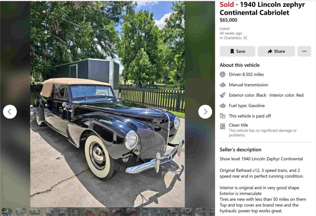 Photos accompanying the sale listing in December 2021 by Streetwise Classics: