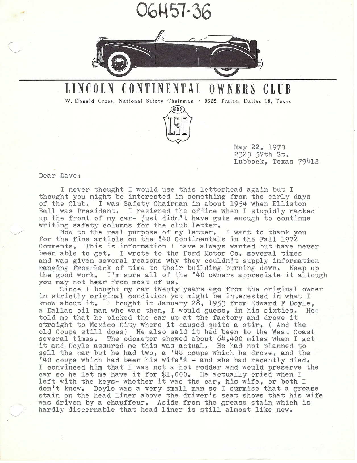 Correspondence from Don Cross and dated May 22, 1973: