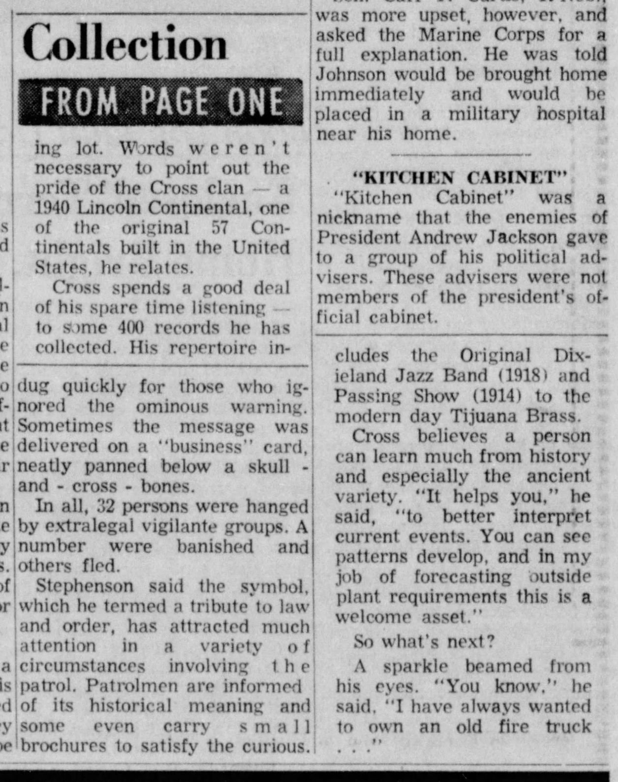 An article in Don Cross’s hometown newspaper on February 23, 1968 with a picture of the car in the background: