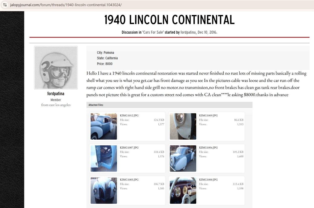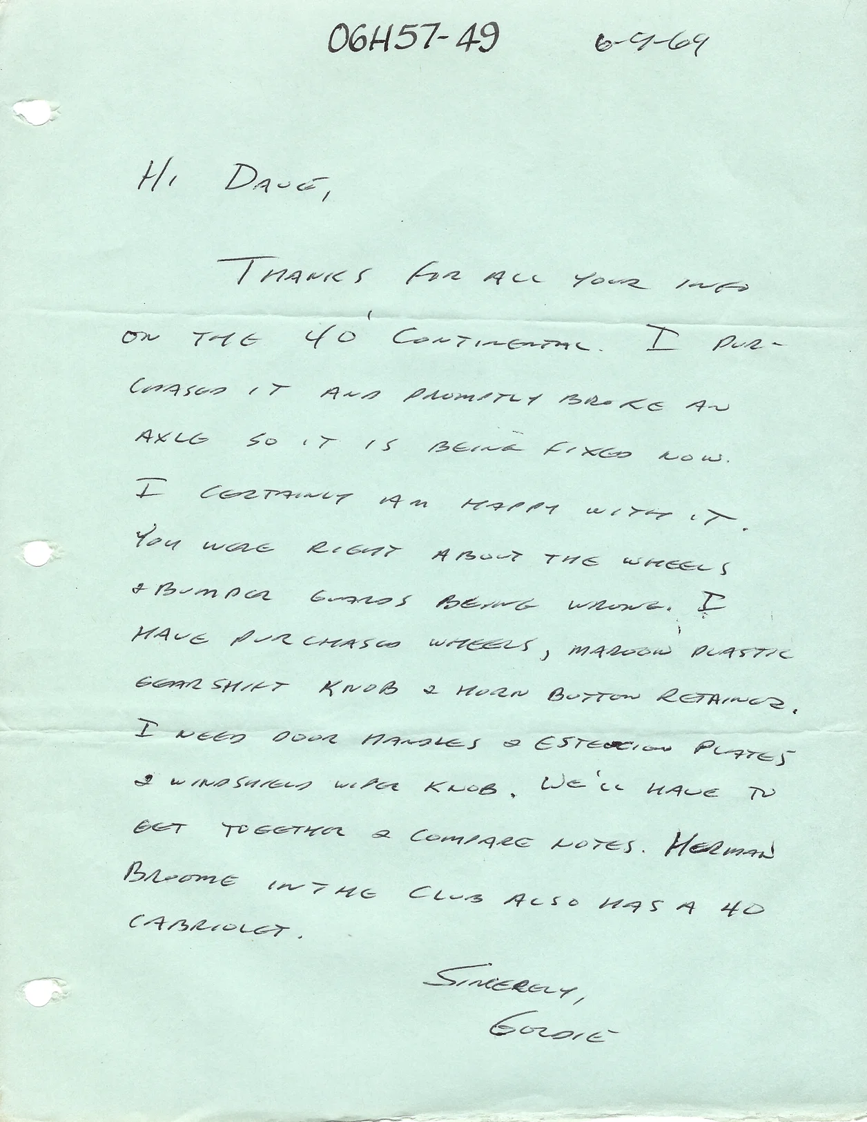 Photos of the car accompanying Bob Bob Lenz’s letter dated March 18, 1995: