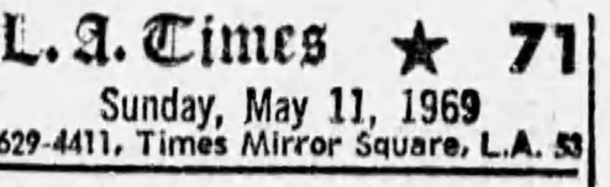 Sale listing posted by Charles Currey in the May 11, 1969 issue of the L.A. Times, which Gordon Chamberlain responded to: