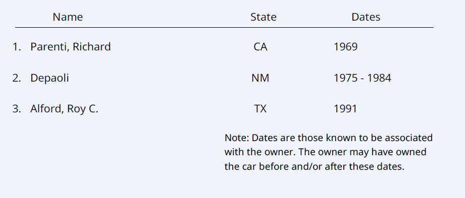 Help us build the history of a car